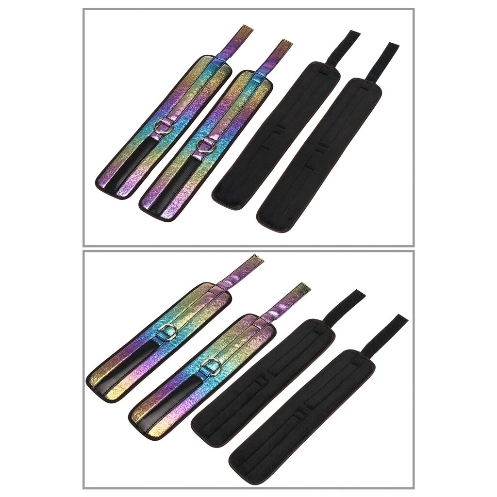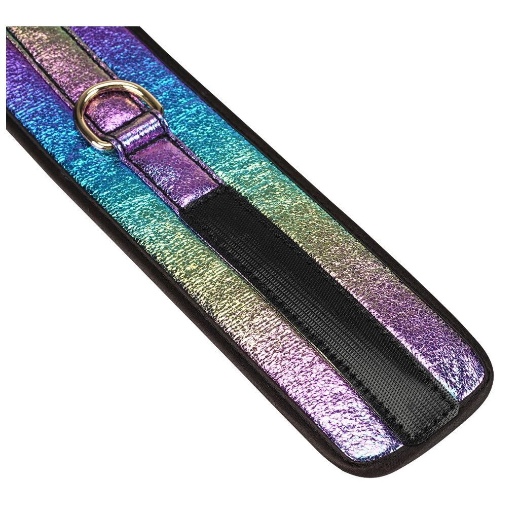 8-teiliges Bondage-Set Vivid Niji von Liebe Seele in eleganter Perlglanz-Optik (glossy multicolor) mit goldfarbenen Beschlägen und Accessoires. Ein ganz besonderes Set für Neugierige und Genießer - exklusiv und von höchster Qualität! Dieses Set enthält: