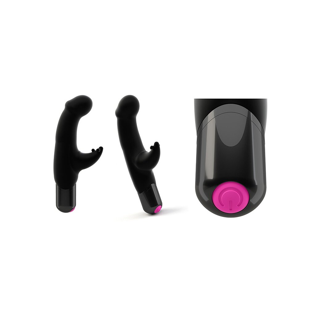 Mit seinem leistungsstarken Motor (vaginal und klitoral) bietet er eine ungewöhnliche doppelte Stimulation! Seine gebogene Spitze zielt besonders auf den G-Punkt. Er verfügt über 12 Vibrationsmodi. Dank seiner praktischen Größe können Sie ihn diskret überallhin mitnehmen.