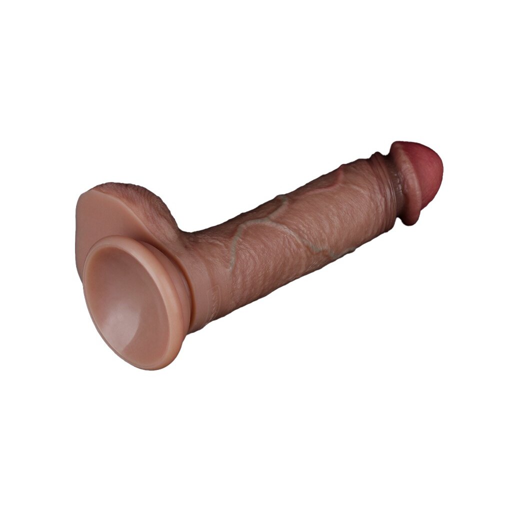 A straight dildo with realistic veins on the shaft. The dildo is flexible and adapts to the body's movements for ultimate satisfaction. It also has a strong suction cup that allows it to be attached to any smooth, hard surface for hands-free use. The core of the dildo is made of solid platinum silicone, which provides a solid inner strength that mimics a real erection. The firmness is complemented by the ultra-soft outer layer of the same platinum silicone, which provides an exceptionally realistic feel against the skin. We recommend using this dildo with a water-based lubricant. Diameter: 3.7 cm / Length: 19.5 cm / Waterproof / Material: TPE