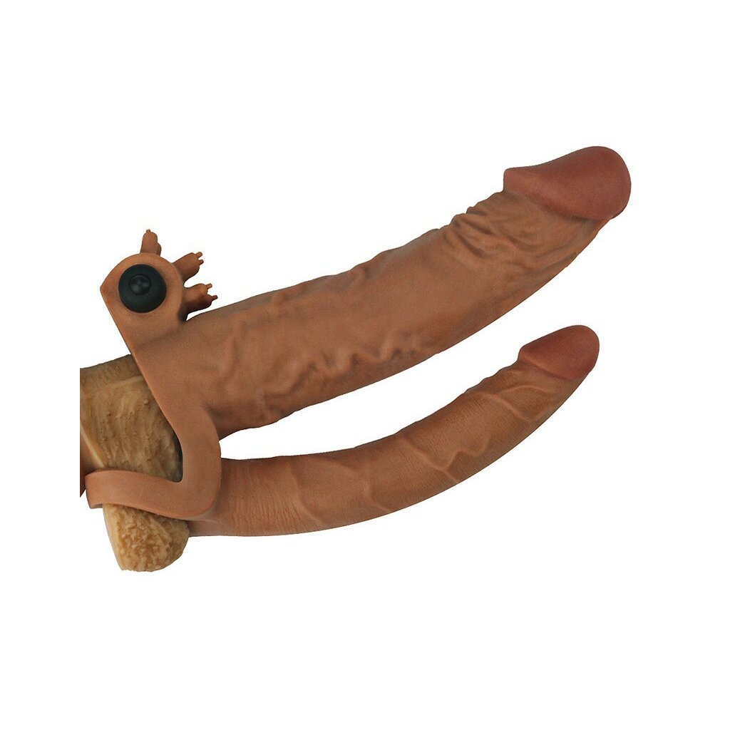 LoveToy Pleasure X Tender Vibrating Double Penis Sleeve + 5 cm Brown