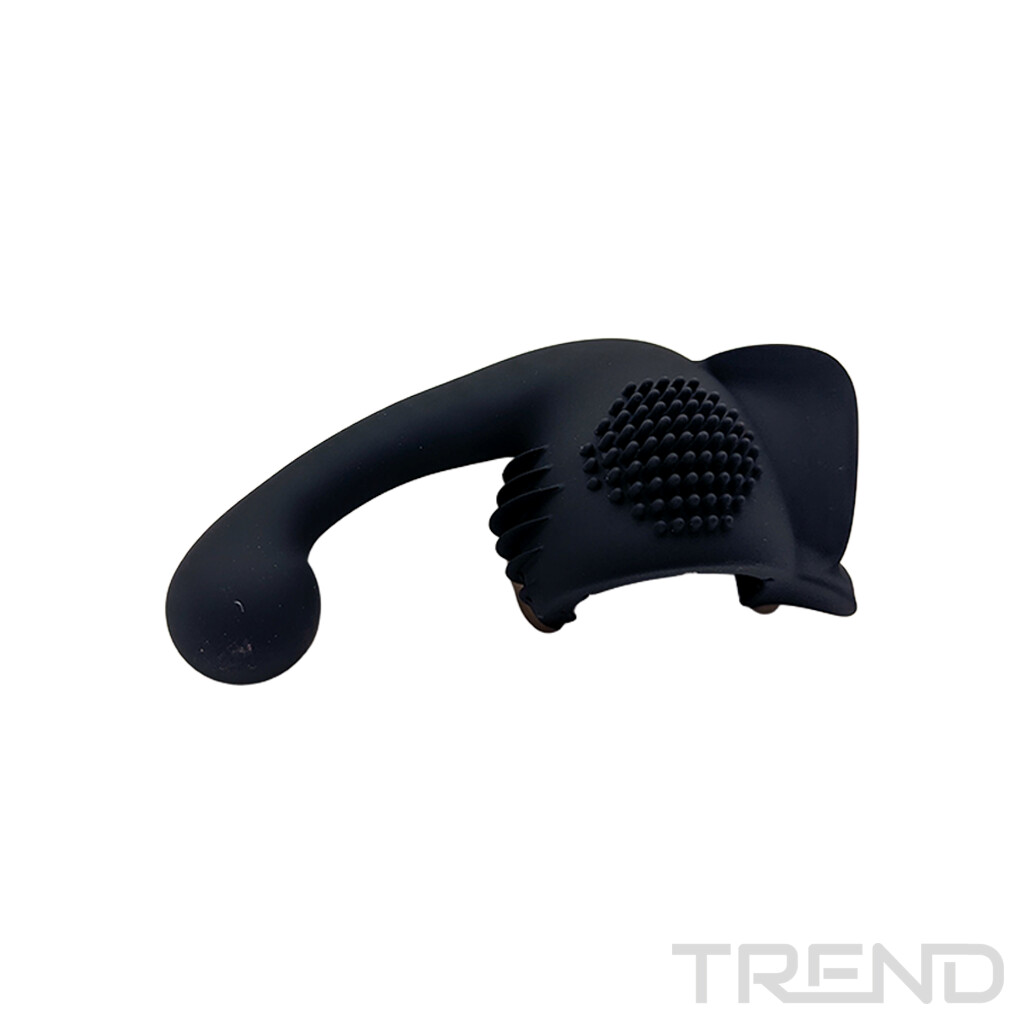 Der weibliche Aufsatz verfügt über einen G-Punkt-Arm mit zwei Stimulatoren, eine Klitorisbürste und ein Vulva-Massagegerät.