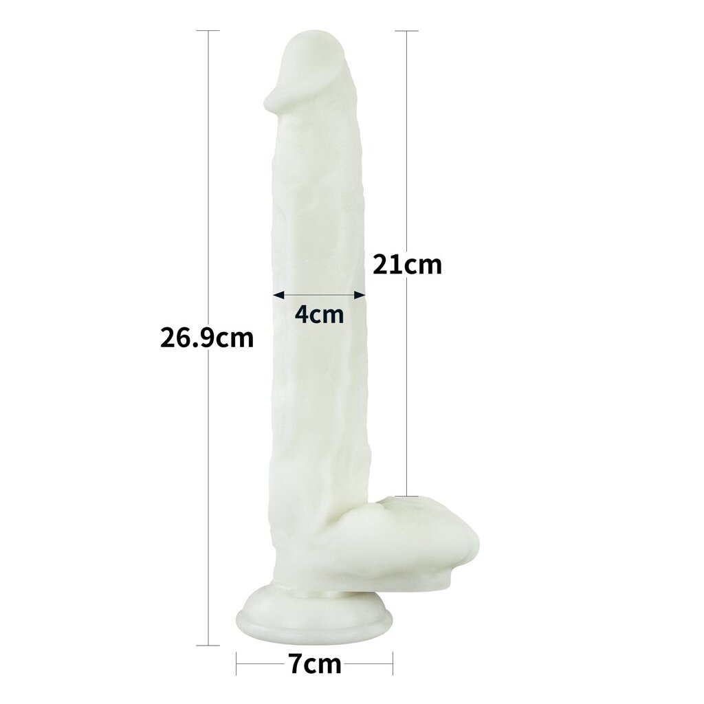 Tauchen Sie ein in die Welt der leuchtenden Lust mit dem Lumino Play Silikon Dildo von Lovetoy! Dieser transparente Dildo ist nicht nur ein Spielzeug, sondern ein Erlebnis. Mit einem Durchmesser von 4 cm und einer imposanten Länge von 26,9 cm bietet er Ihnen intensive Stimulation und unvergessliche Momente. Der Lumino Play Dildo ist mehr als nur ein gewöhnliches Spielzeug - er ist Ihr Begleiter für aufregende Abenteuer, besonders wenn das Licht ausgeht. Dank des ungiftigen Leuchtpulvers strahlt dieser Dildo nachts ein farbenfrohes blaues Licht aus, das Ihre dunkelsten Fantasien zum Leben erweckt. Mit realistischer Textur und Venenmustern sorgt der Lumino Play Dildo für eine authentische Stimulation, die sowohl vaginal als auch anal für unvergessliche Höhepunkte sorgt. Seine wasserdichte Eigenschaft ermöglicht es Ihnen, sinnliche Momente auch unter der Dusche oder im Wasser zu genießen. Um die besten Leuchteffekte zu erzielen, sollte der Dildo tagsüber dem Licht ausgesetzt werden. So können Sie sich auf eine Nacht voller leuchtender Freuden freuen. Erleben Sie mit dem Lumino Play Silikon Dildo von Lovetoy eine neue Dimension der Lust und lassen Sie sich von seinem farbenfrohen Glanz verzaubern.