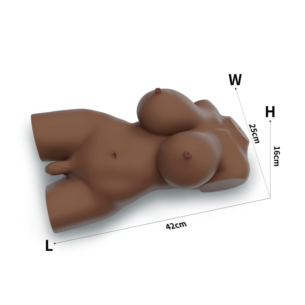 A personalized erotic toy made of skin-like material, realistically designed, with body openings in the shape of a penis and vagina, as well as breasts. Using this toy can significantly improve self-control during sexual intercourse and thus significantly prolong its duration. The body opening may seem too tight at first, but its elasticity increases after a few uses. The length of the penis is 4.6 cm.