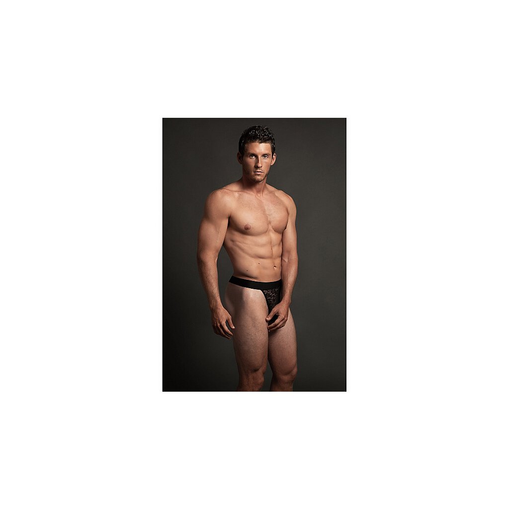 Sheer thong with star motif and a cheeky surprise. Elastic waistband and elasticated thighs. Size S/M / Material composition: 90% polyester, 10% elastane