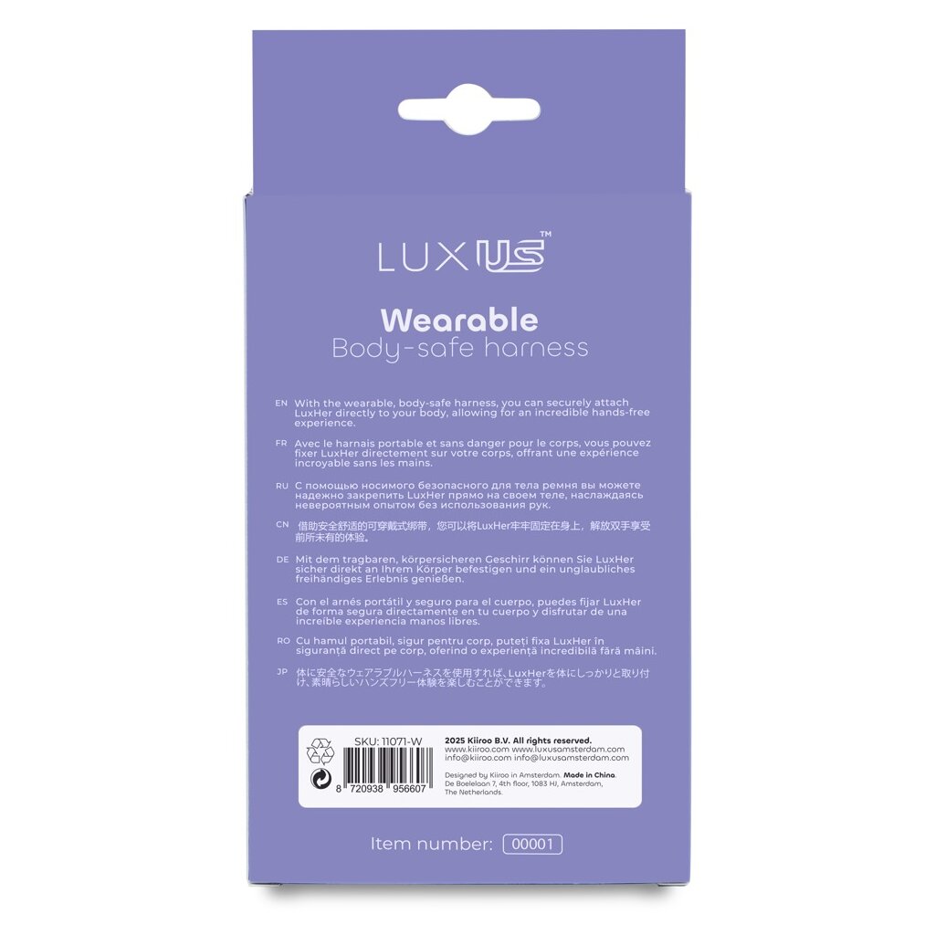Le harnais Luxus de Kiiroo est l’accessoire idéal pour le vibromasseur clitoridien LuxHer du set pour couples Luxus. Le vibromasseur s’insère facilement à l’avant du harnais et reste fermement en place sur la zone érogène.