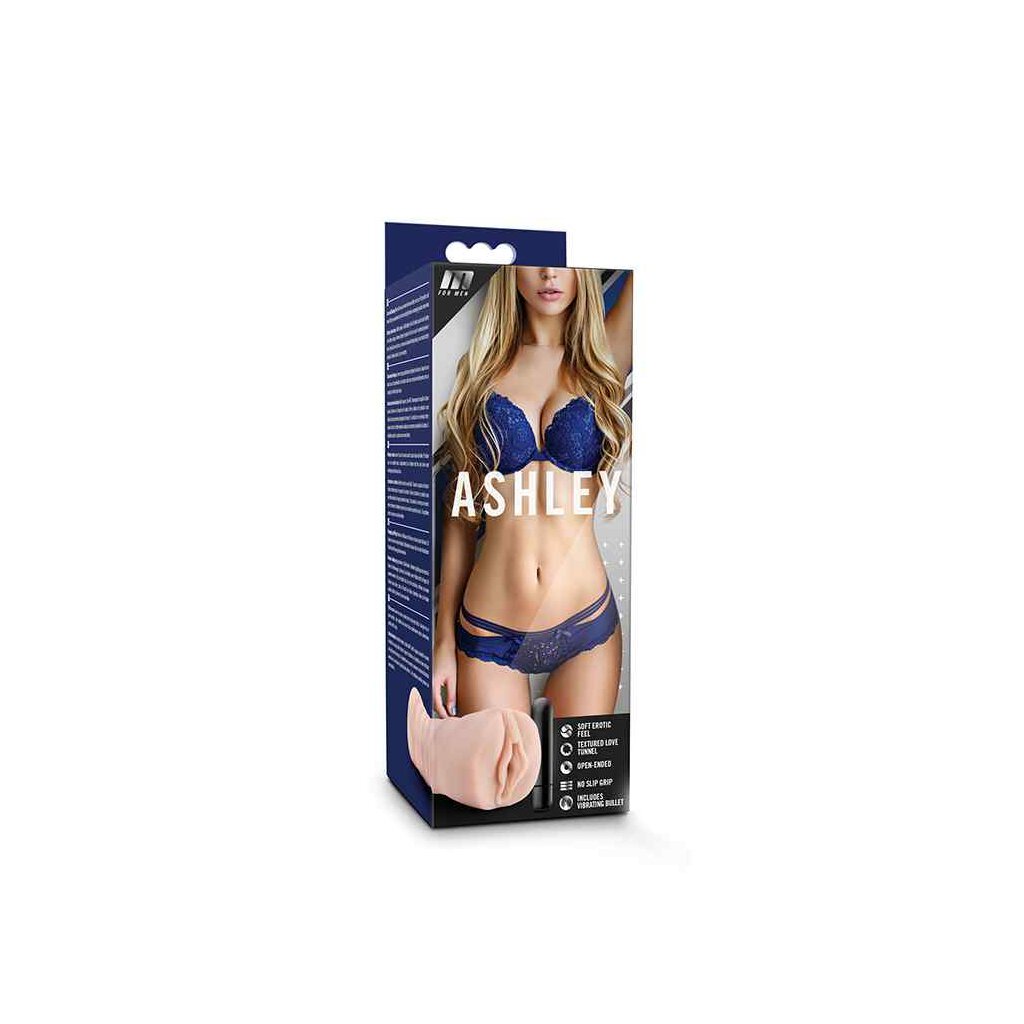 Ashley is aching to take you whenever you want her. This soft, vagina-shaped masturbator is made of lifelike X5, for the perfect balance of soft and firm. Plus, the one-speed vibrating bullet delivers even more sensation up and down your shaft. Sized for convenient one-hand stroking, Ashley is open-ended to fit all lengths and is equipped with a no-slip grip, so you control the speed and depth of your thrusts. Enjoy Ashley alone or with your partner.
