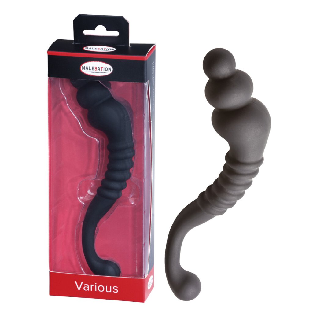 Analstimulator in innovativem und ergonomischem Design für die Stimulation der Prostata. Die Wellenform und der lang gebogene Schaft stimulieren geschickt den Anus und die Prostata des Mannes. Durch den praktischen Griff ist der Analstimulator einfach zu verwenden - Einführen, Stimulation und Herausziehen gelingen spielend leicht. Material: Silikon, einfach zu reinigen, wasserdicht. Gesamtlänge: ca. 17,60 cm, Ø ca. 1,95 - 3,40 cm