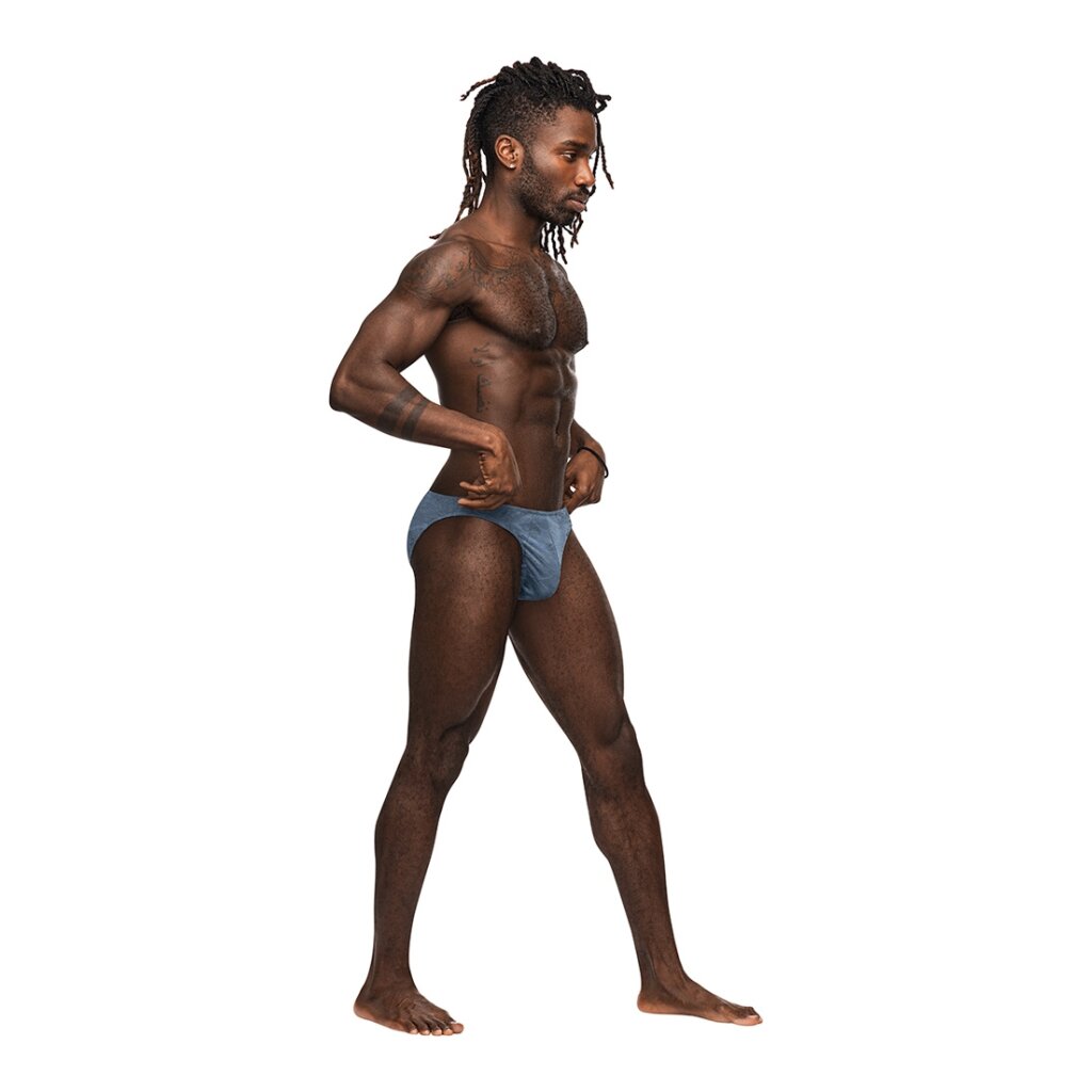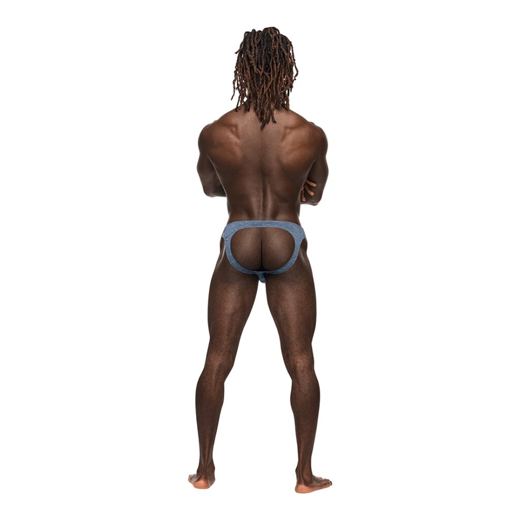 - This model from the Male Power Inter-mingle collection consists of a moonshine jock brief with a low-cut waist, a contour pocket and an exposed back.