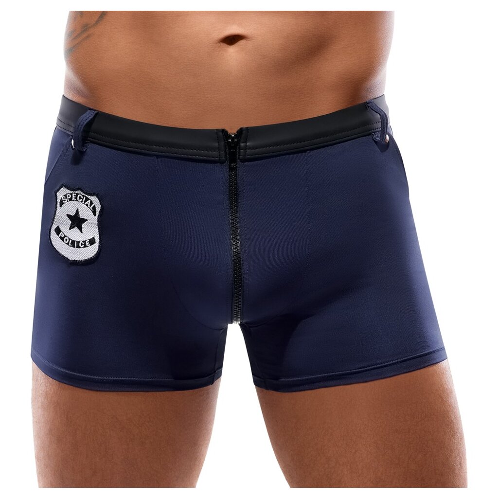 Enge Pants von Svenjoyment im Special Police Style mit auffälligem Emblem vorne. Im typischen Dunkelblau mit schwarzem Mattlook-Bund und Gürtelschlaufen. Rundum weich und elastisch für maximalen Tragekomfort. Vorne unterlegter Reißverschluss. Größe S / Materialzusammensetzung: 90% Polyester, 10% Elasthan, Polyurethan-Beschichtung