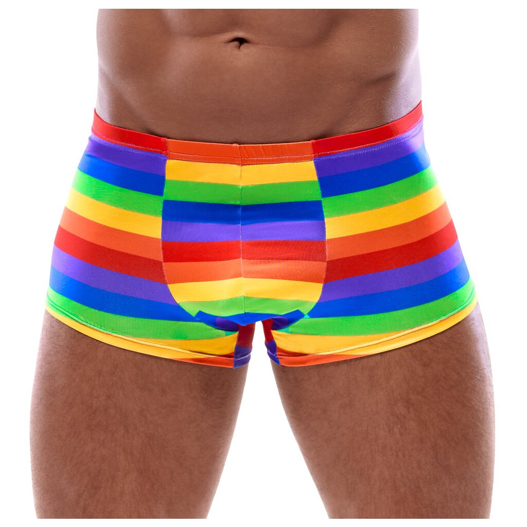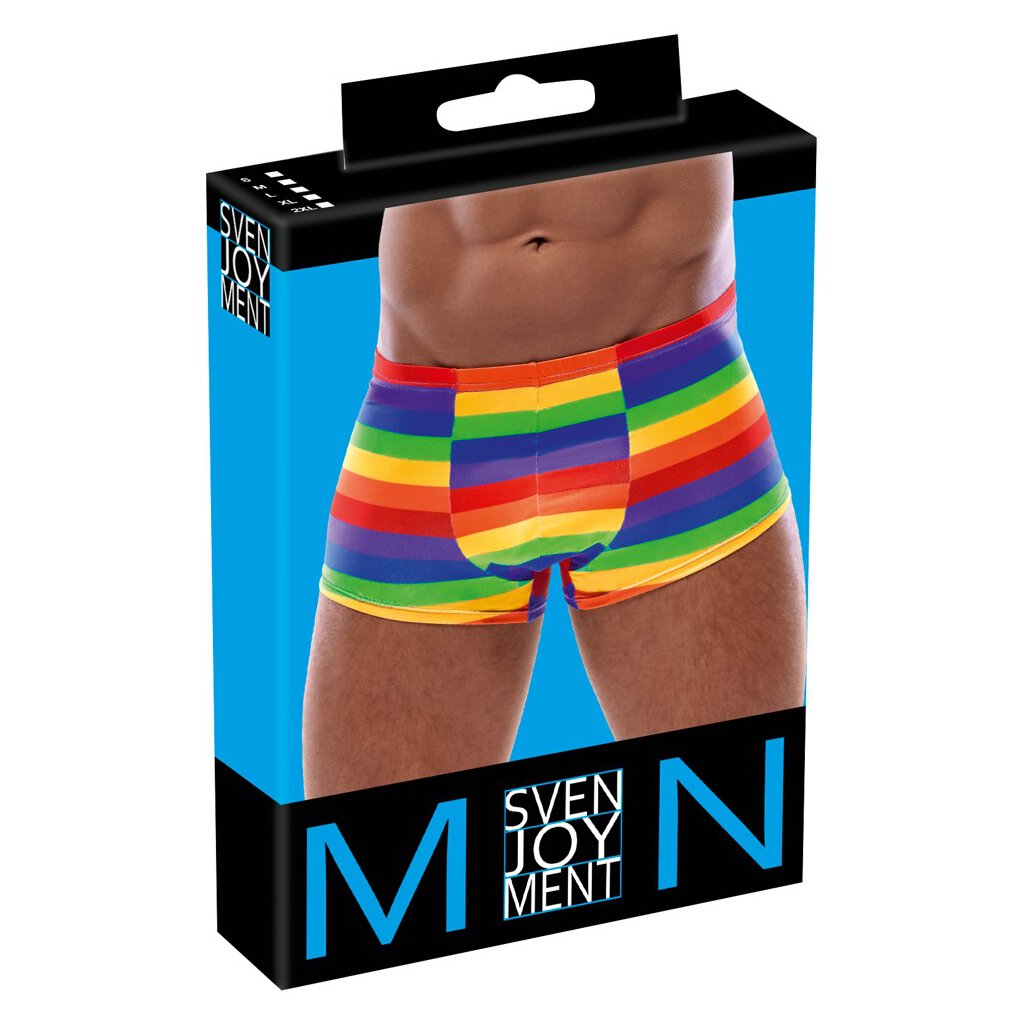 So bunt wie die Liebe! Anschmiegsame weiche Pants von Svenjoyment mit bunten Streifen in Regenbogenfarben. Rundum elastisch und mit bezogenem Bundgummi für höchsten Tragekomfort und uneingeschränkte Bewegungsfreiheit. Größe M / Materialzusammensetzung: 90% Polyester, 10% Elasthan