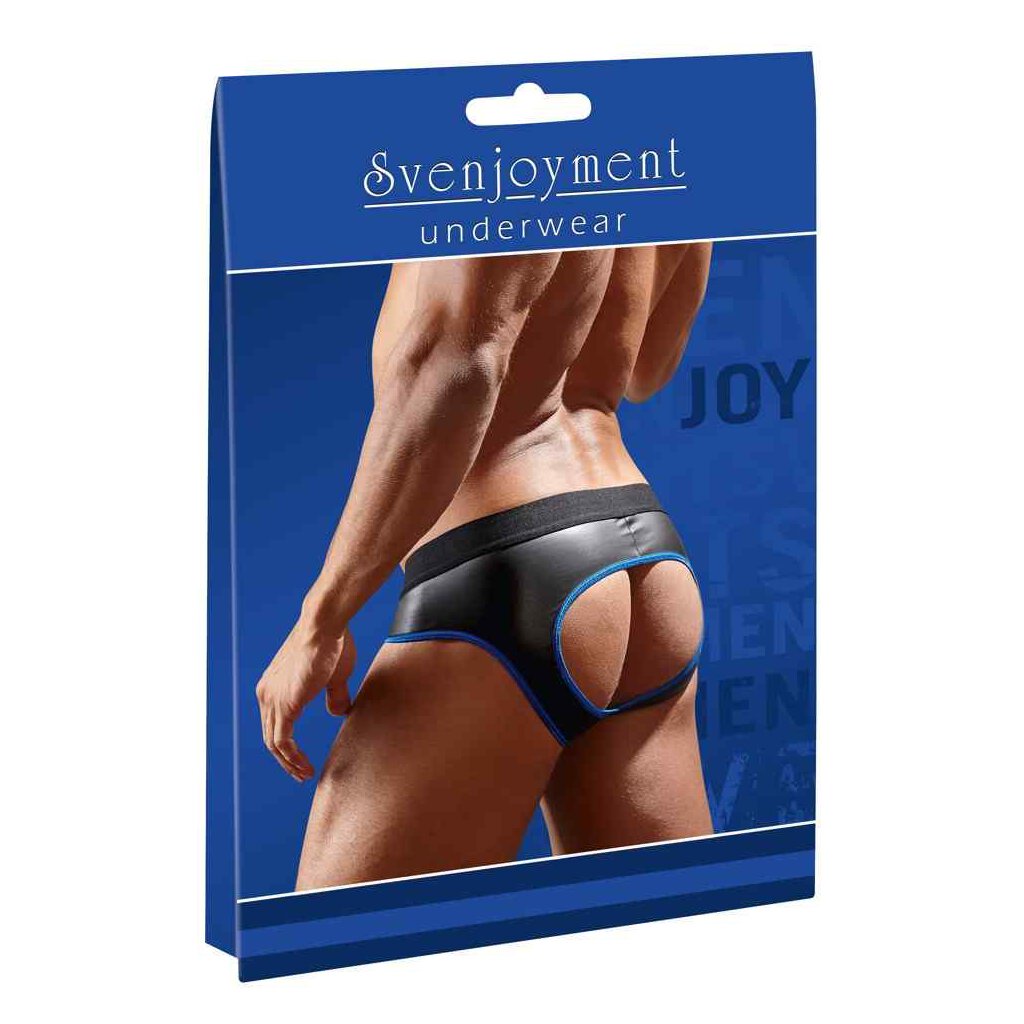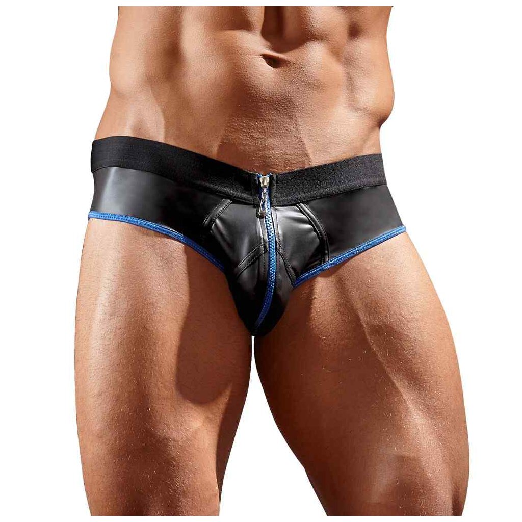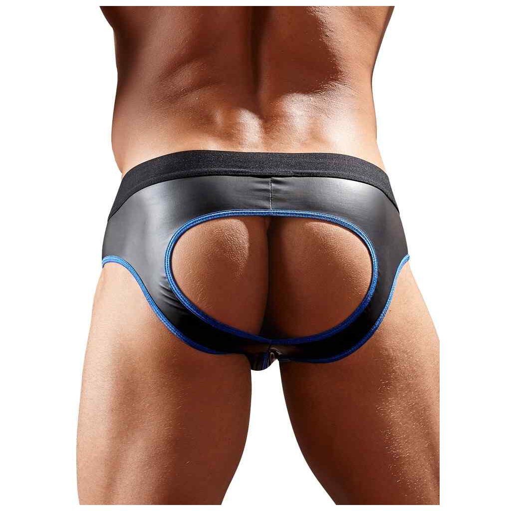 Glissez-vous dans ce jock mat brillant, ouvert dans le dos, au look caoutchouc néoprène et profitez des regards admiratifs de votre partenaire. Avec une fermeture éclair sur le devant. Noir, bleu. 60% polyuréthane, 36% polyester, 4% spandex.