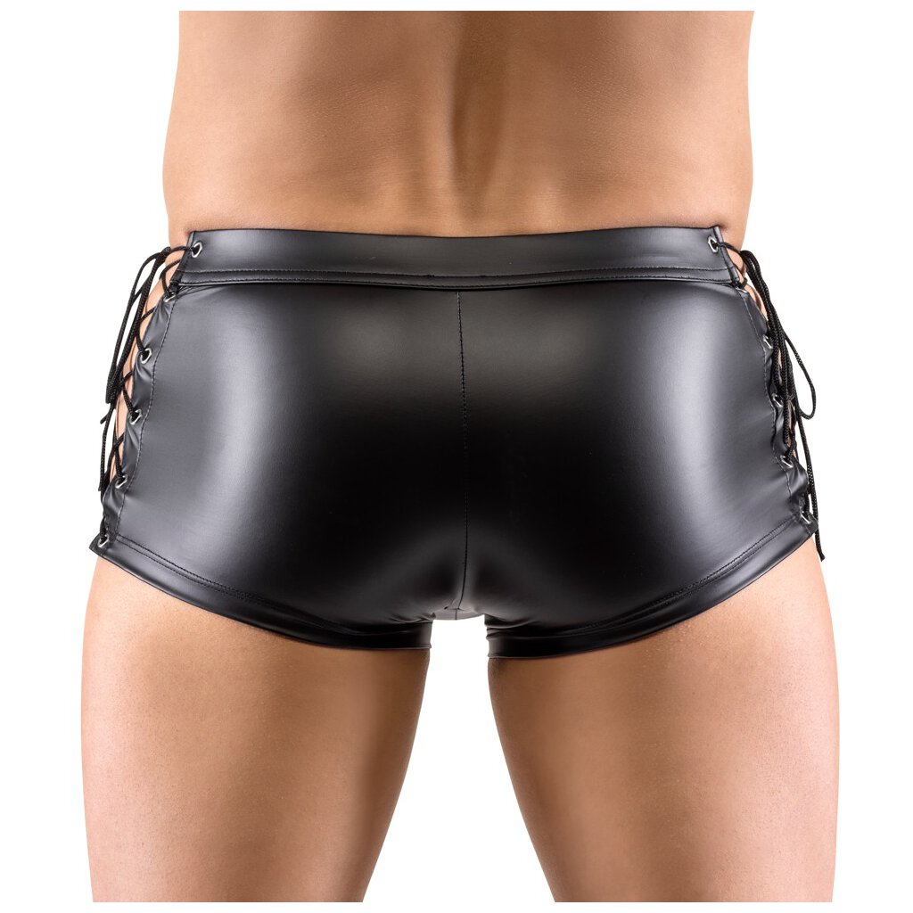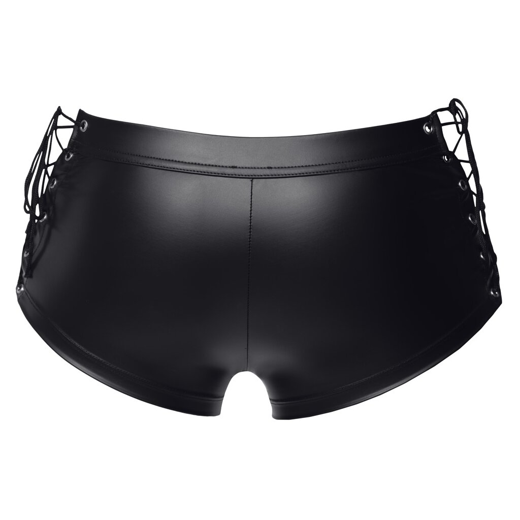 Emphasizing close-cut pants by Svenjoyment made of lightweight stretch material with trendy matte finish. Each side with continuous variable lacing, front underlaid zipper.