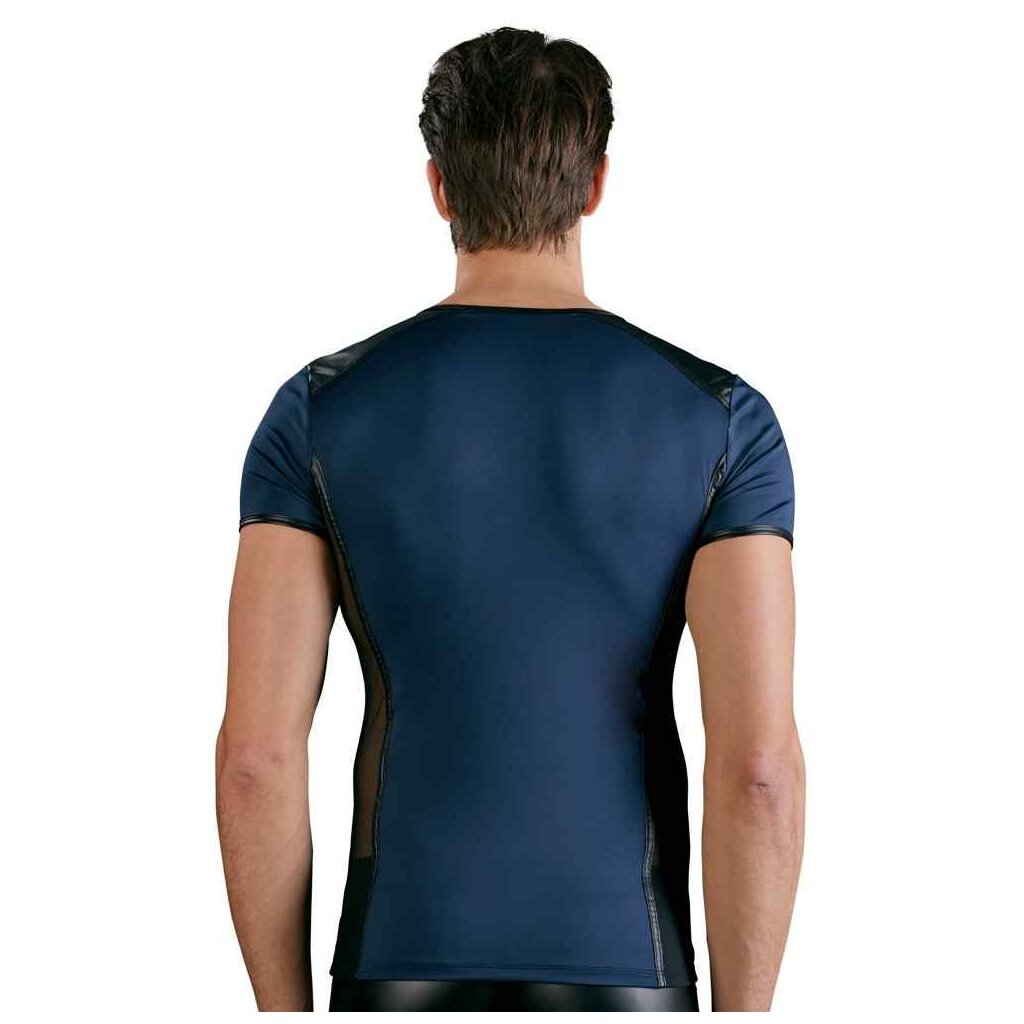 T-shirt accrocheur en bleu/noir. La chemise se distingue des autres par la combinaison extrêmement extensible de microfibre opaque et douce et de powernet transparent avec des détails tendance d'aspect mat.