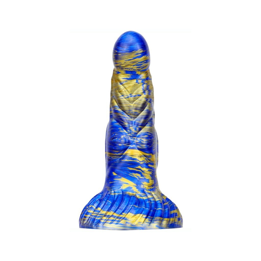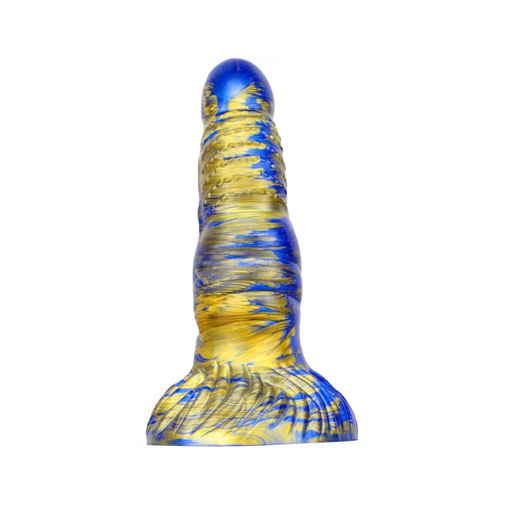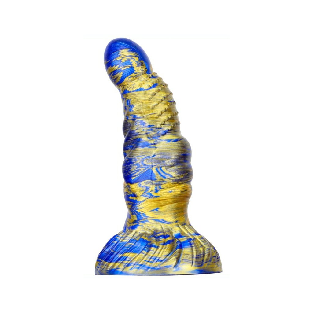 The MetallicAnal Dildo Fantasy Nirp in blue and gold is here to take your pleasure to the next level! With its original shape, studded and ribbed surface and perfect 15 cm length for insertion, this toy is destined to fulfill your wildest fantasies. The width ranges from 3.5 to 5.3 cm to provide a satisfying experience for every user. But wait, that's not all! This innovative dildo is equipped with a suction cup mount that allows you to go hands-free and enjoy endless possibilities. It's also made from soft silicone that ensures a pleasurable and pleasurable experience every time. Whether you're a beginner or an experienced explorer, the MetallicAnal Fantasy Nirp dildo is ready to take you on a journey of pure pleasure. Get ready for an adventure like never before!