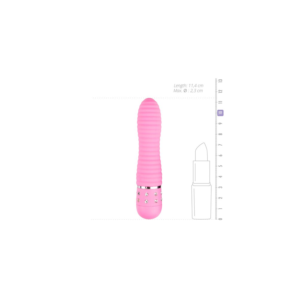 Les diamants sont les meilleurs amis des filles, tout comme cet adorable petit vibromasseur ! Grâce à la commande de vibration pratique à base tournante, vous pouvez passer d'une caresse douce à un massage profond. Le matériau ferme et lisse permet une insertion et un retrait faciles, tandis que l'embout pointu est un excellent outil pour une stimulation ciblée. Cet élégant mini-vibromasseur est disponible en quatre versions différentes : nervurée, virevoltante, incurvée ou doublée. Ils ont chacun une sensation différente, mais ils garantissent tous un plaisir maximal. Un must sur votre table de chevet !