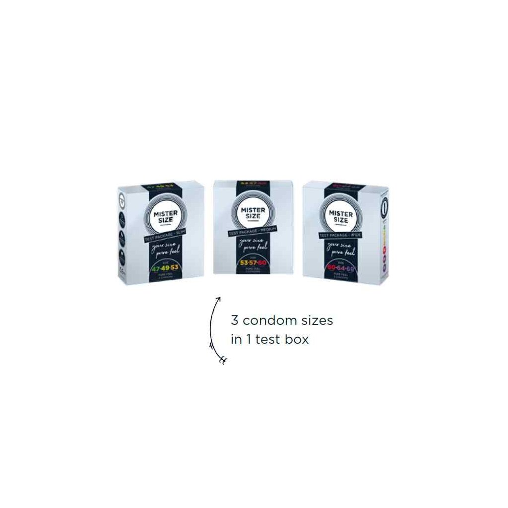Pure feel 60mm, 64mm, 69mm (3x3Stück Testpackung), für Neugierige, die neue Kondomgrößen ausprobieren möchten