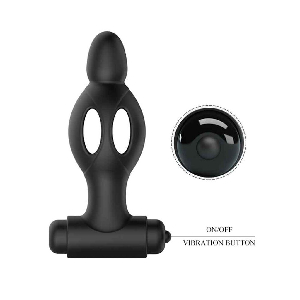 Dieser schwarze vibrierende Buttplug hat einen Kugelvibrator an der Unterseite. Wenn Sie den Knopf drücken, können Sie zwischen den 10 Vibrationsmodi wechseln. Der Plug hat eine weiche, abgerundete Spitze mit offenem Design für sanftes Einführen.