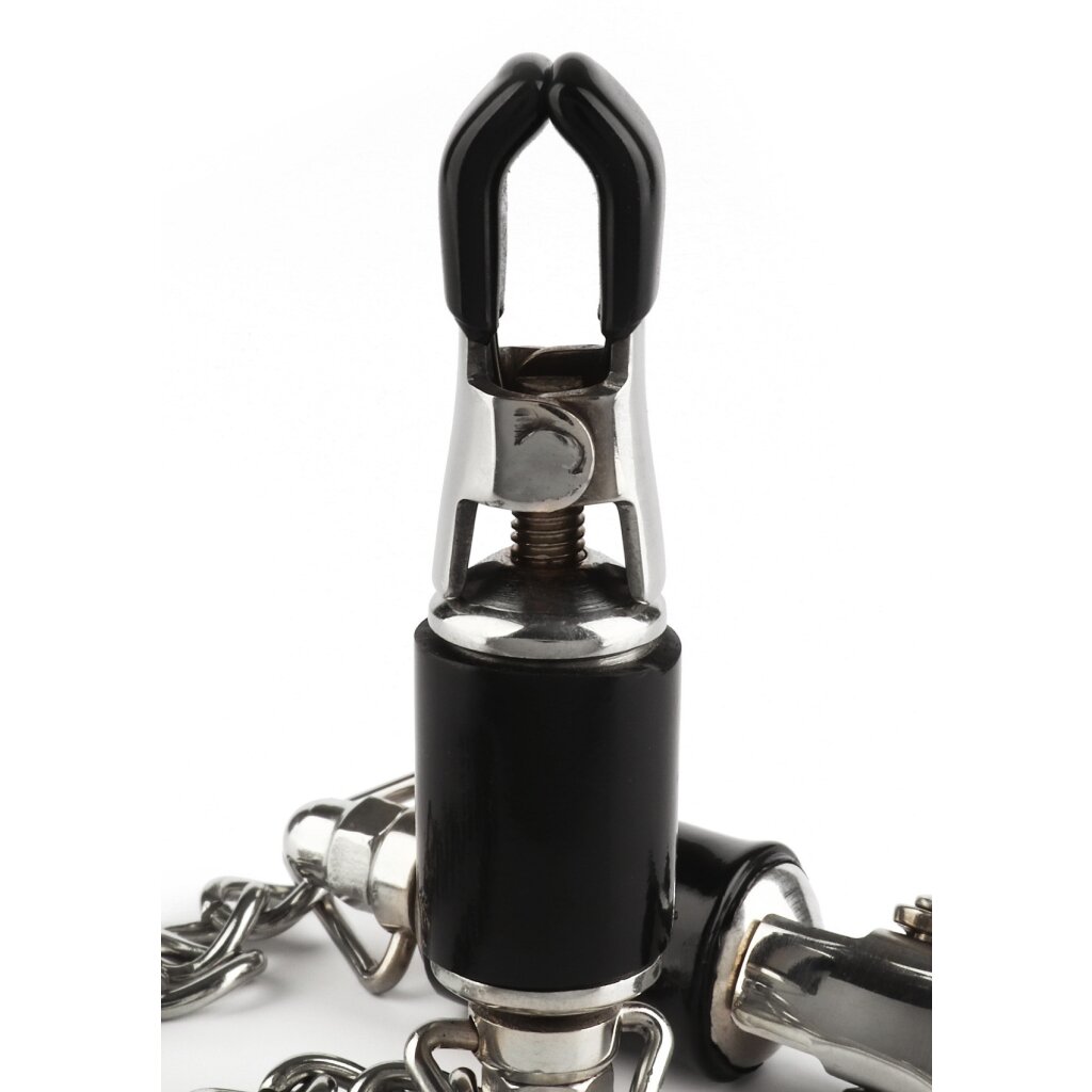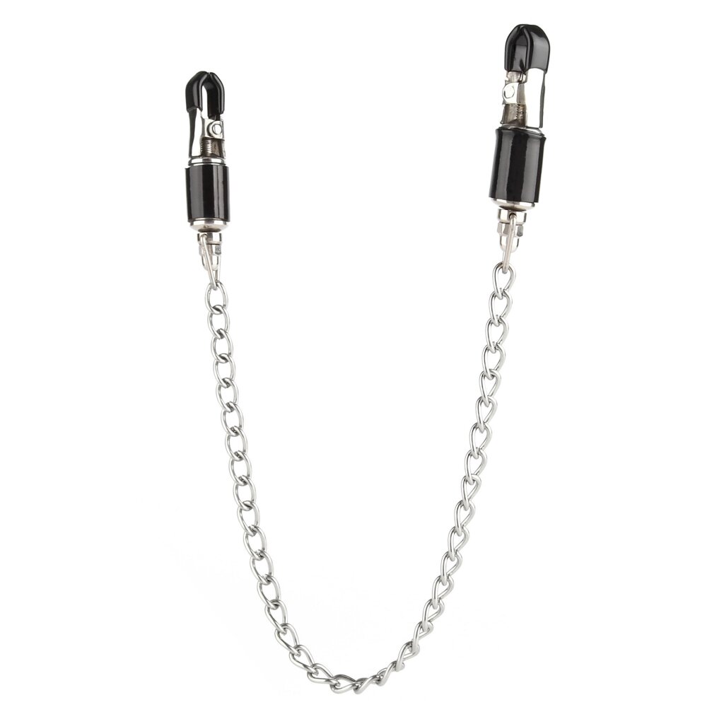 Die Mr. Steel Zitzenklemmen sorgen für eine feste, einstellbare Stimulation der Brustwarzen und erhöhen so die Empfindlichkeit. Diese Klemmen aus hochwertigen Materialien verfügen über ein zylinderförmiges Design mit gummibeschichteten Spitzen für einen sicheren und dennoch bequemen Halt. Der einstellbare Schraubmechanismus ermöglicht eine präzise Druckregulierung für unterschiedliche Intensitätsstufen. Erhältlich entweder mit einer Verbindungskette für zusätzliches Gewicht und Bewegung oder mit Ringen für vielseitiges Spiel. Ideal für Nutzer, die kontrollierte Brustwarzenstimulation ausprobieren möchten. Vor und nach jedem Gebrauch reinigen.