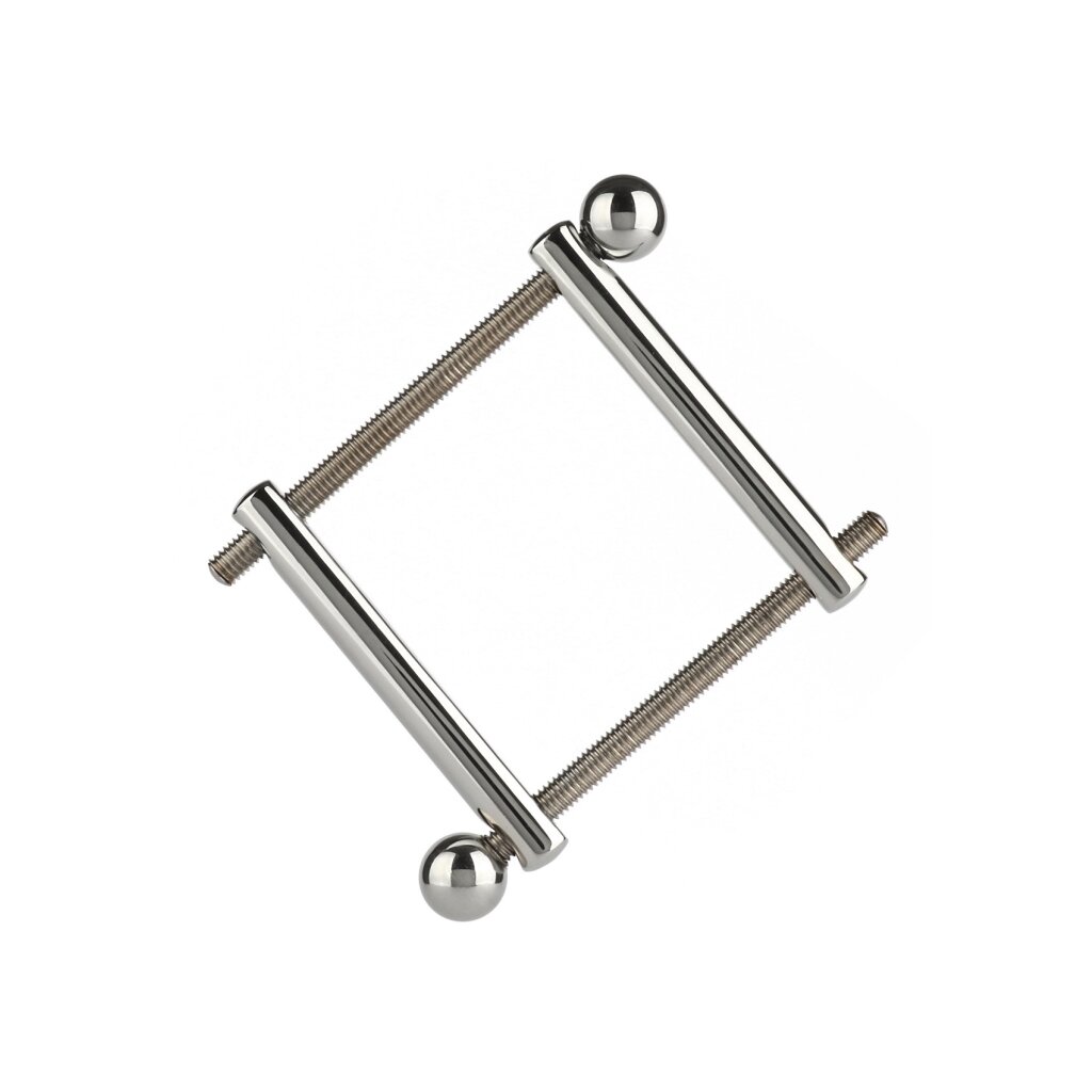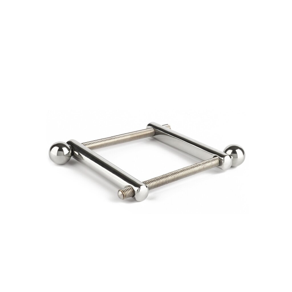 Der Mr. Steel Gemini Ball Vise ist ein hochwertiges CBT-Gerät, das für kontrollierte Kompression und Stimulationsspiele entwickelt wurde. Er besteht aus hochwertigem Edelstahl und übt durch einen verstellbaren Schraubmechanismus gleichmäßigen Druck auf die Hoden aus, sodass der Benutzer die für ihn ideale Intensität finden kann. Die glatten Stangen und abgerundeten Kugelenden sorgen für einen sicheren und dennoch bequemen Halt, verhindern übermäßige Beschwerden und gewährleisten gleichzeitig einen festen Halt. Dieser Schraubstock ist perfekt für alle, die Ausdauer- und Fesselspiele ausprobieren möchten, und verstärkt die Stimulation durch allmählich zunehmenden Druck. Dank seines ergonomischen Designs lässt er sich leicht einstellen und eignet sich daher ideal für BDSM-Sessions allein oder zu zweit. Wie bei allen CBT-Geräten sollten Sicherheit und Komfort immer an erster Stelle stehen, um eine gute Durchblutung zu gewährleisten und übermäßige Belastungen zu vermeiden. Dieses langlebige, leicht zu reinigende Gerät ist ein Muss für fortgeschrittene Spieler, die die Grenzen der Empfindungskontrolle ausloten möchten. Für optimale Hygiene vor und nach jedem Gebrauch gründlich reinigen.