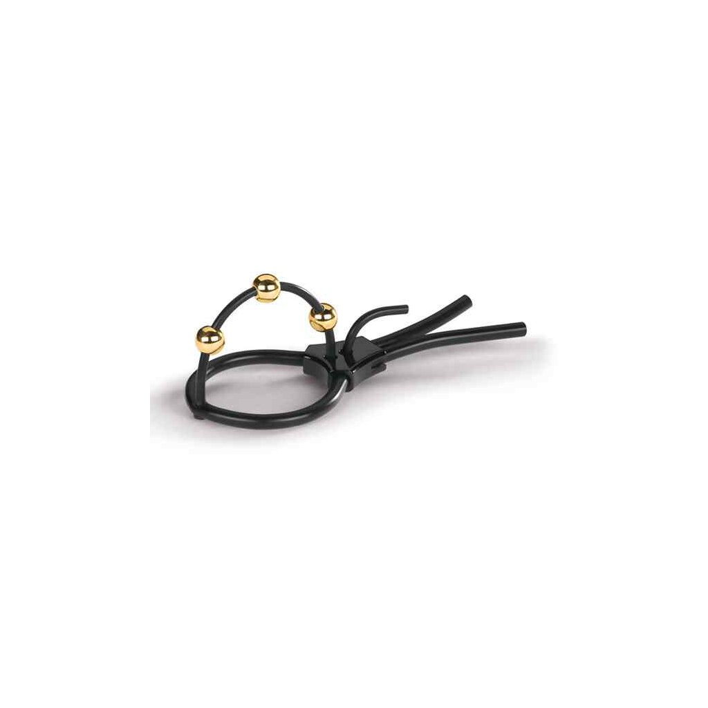 L'or ne rend pas seulement la stimulation plus régulière, il la concentre également, de sorte que les picotements et les pulsations sont particulièrement intenses autour des boules. Et parce que chaque couronne est un peu différente, vous pouvez déplacer les boules d'or le long de la sangle supérieure vers les points où la stimulation se sent le mieux.
