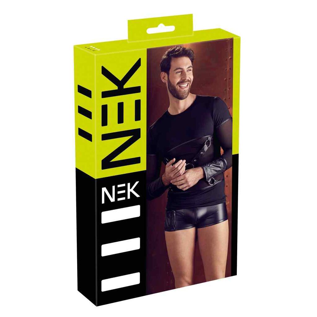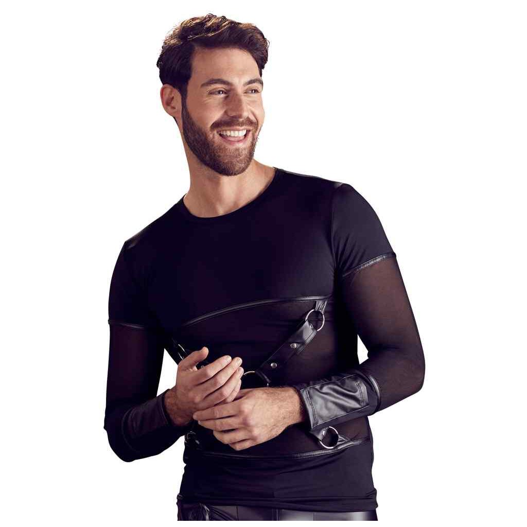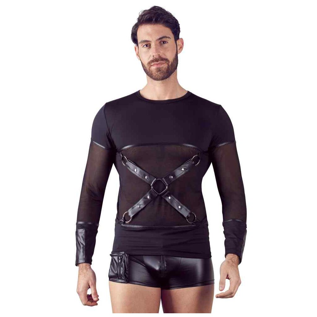 T-shirt d'aspect mat avec des manches longues et un élégant insert powernet à l'avant pour mettre en valeur les muscles d'un homme. Le harnais de poitrine amovible (boutons pression) présente des détails magnifiques et exclusifs pour le spectateur et il est également séduisant, invitant et aiguisera l'appétit d'un partenaire.