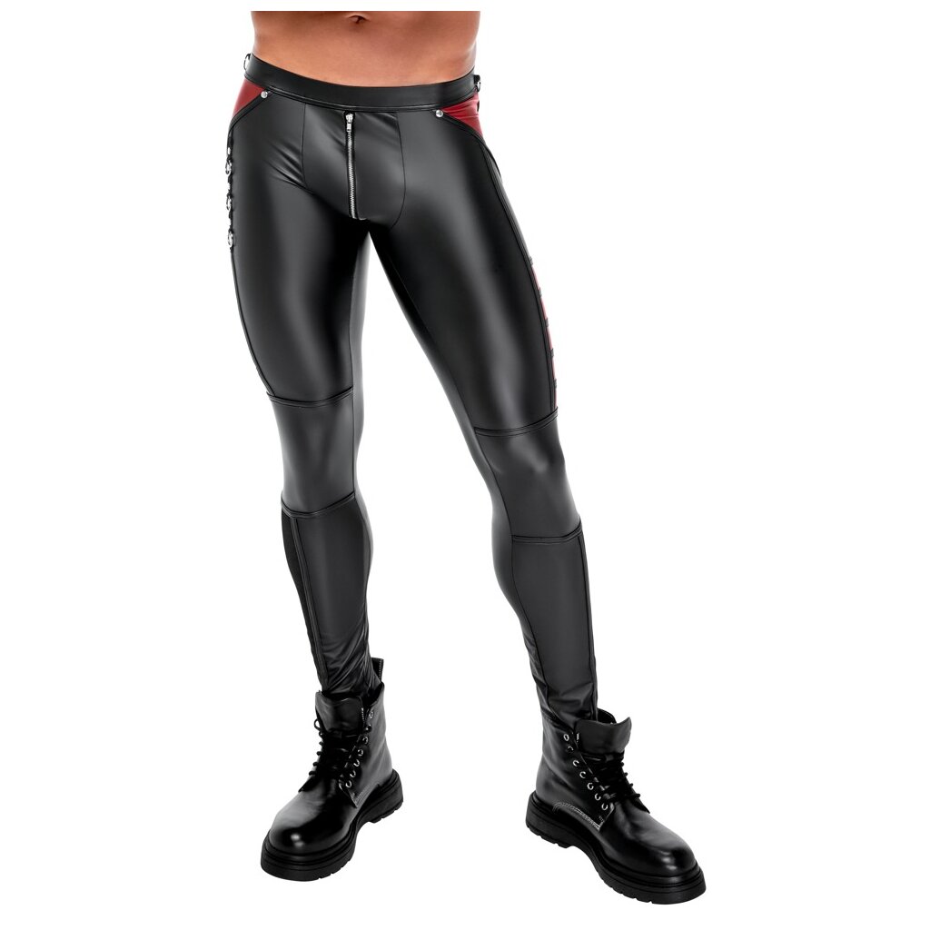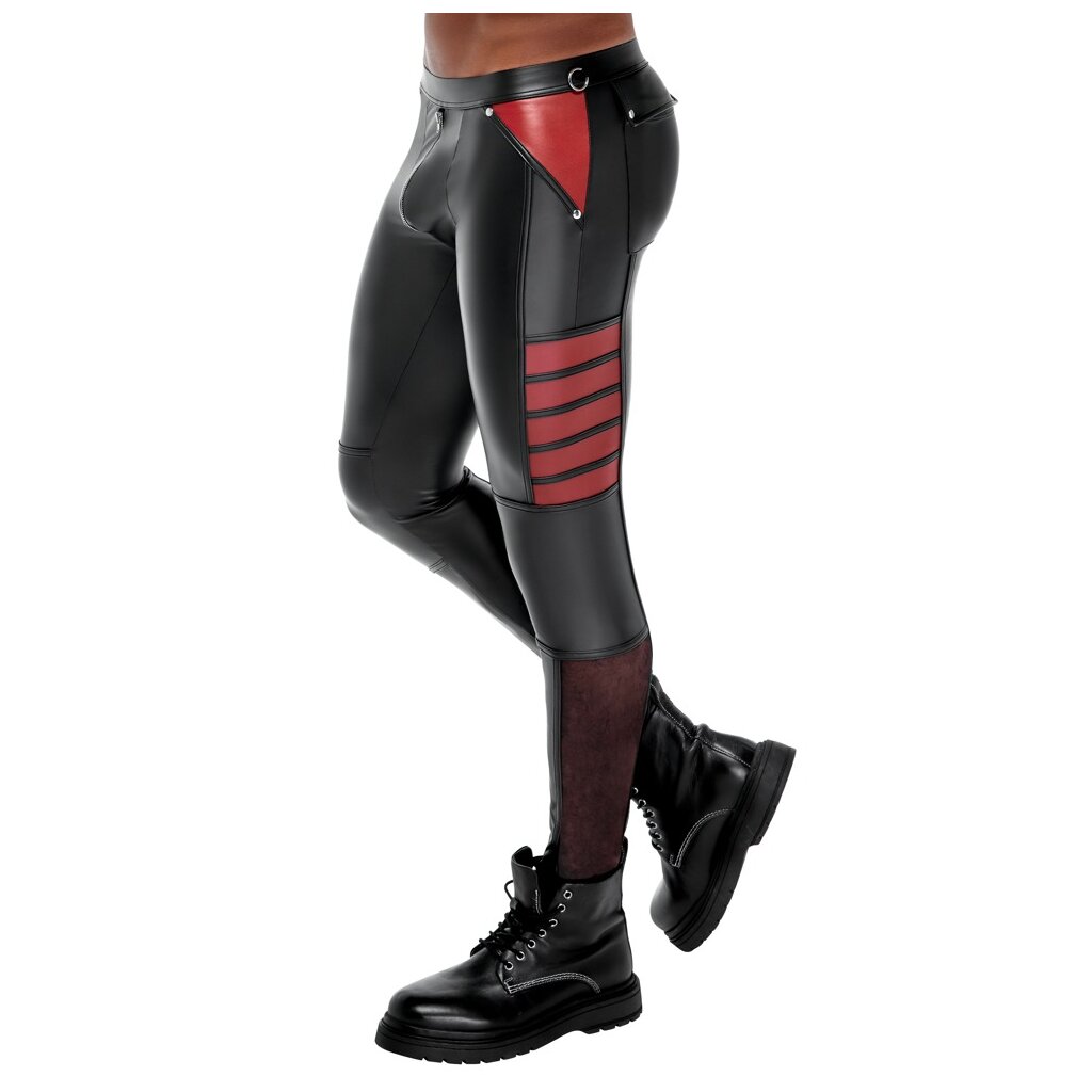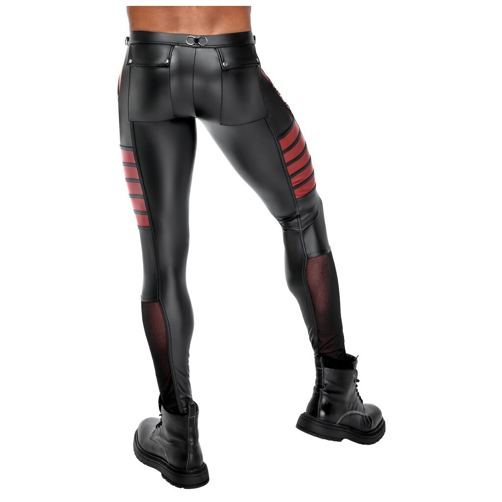 Pantalon moulant de NEK dans un look noir mat avec des contrastes rouges et des détails de rivets et d'anneaux marquants. Insert en filet transparent sur le bas de chaque jambe. Avec une taille élastique recouverte et douce et élastique sur tout le pourtour pour un grand confort. Fermeture éclair sous le devant. À l'arrière, 2 poches plaquées à rabat. Taille S / Composition : 90% polyester, 10% élasthanne