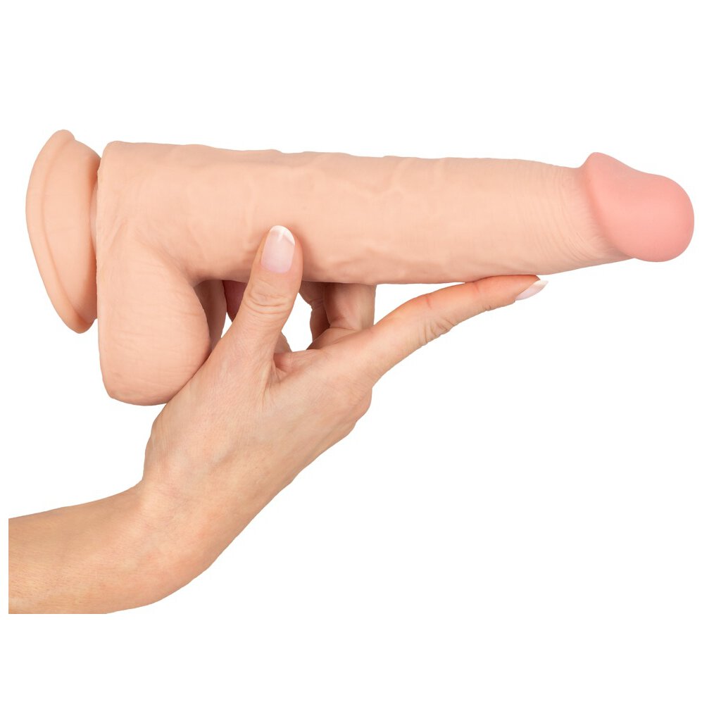 Gode flexible avec peau mobile L de Nature Skin au look de pénis absolument réaliste avec veinage (peau) mobile et gland prononcé. Avec une base à succion sous les testicules, qui adhère fermement et solidement à toute surface lisse pour un plaisir mains libres. Le gode est donc également compatible avec les strap-ons et les urinoirs.
