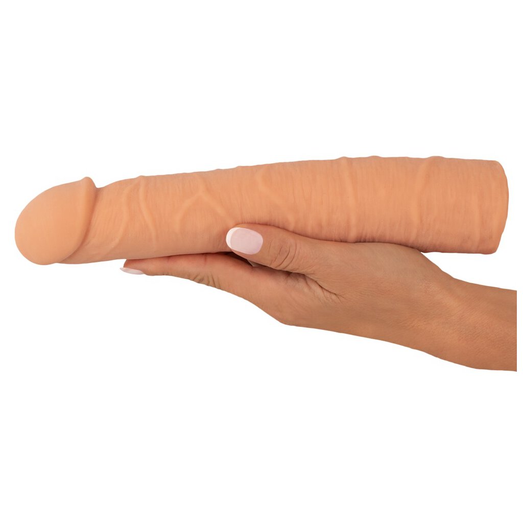 Le manchon d'extension pour pénis de Nature Skin allonge le pénis de 7 pouces et augmente sa circonférence de 2 pouces. Pour des moments de plaisir profonds à deux, il suffit de glisser le manchon aux veines marquées et au gland rebondi sur le membre.