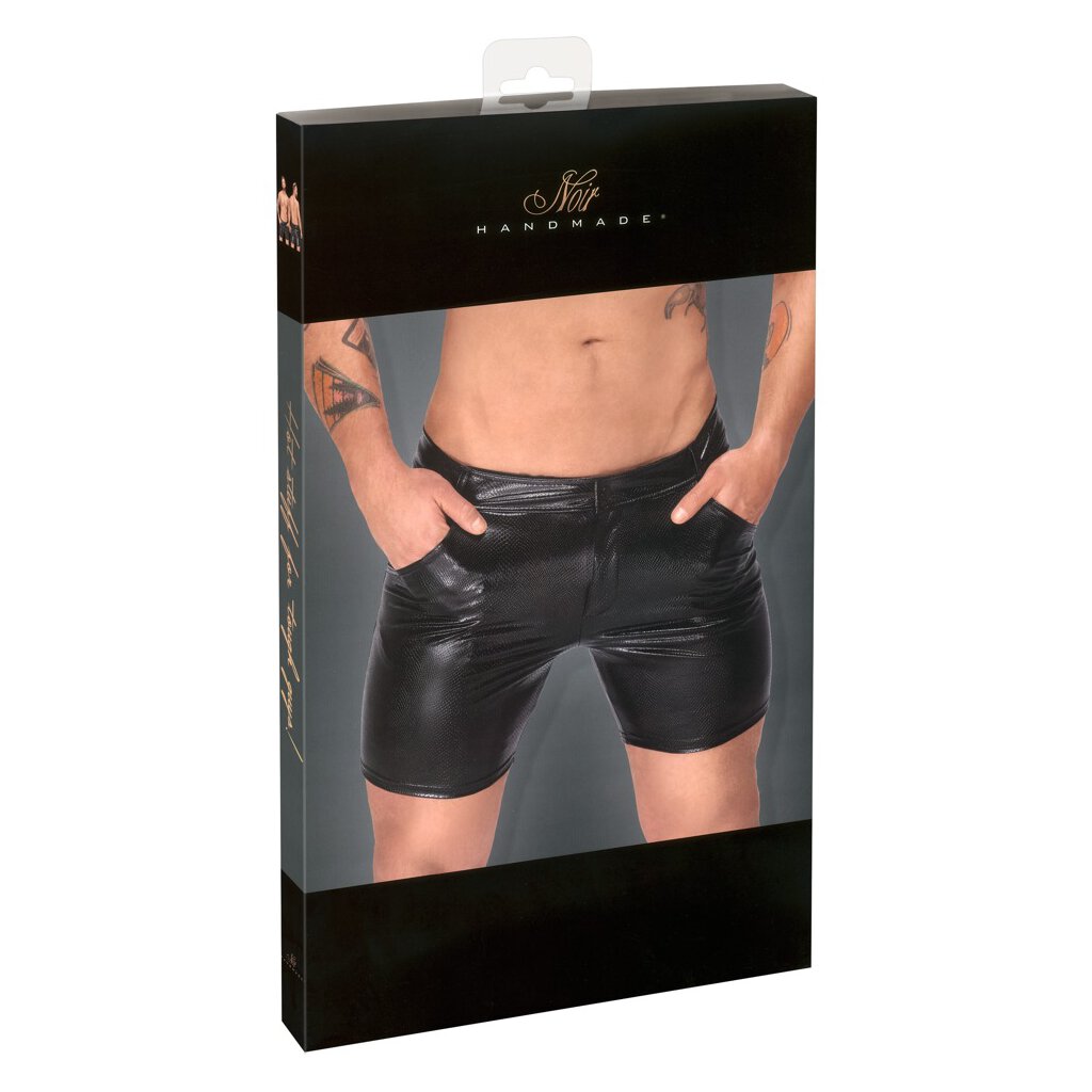 Short Noir au look peau de serpent irisé et à la longueur de jambe très tendance. Fantastiquement élastique pour une coupe moulante et un grand confort de port. Fermeture éclair dissimulée sur le devant, ceinture avec passants. Poches arrière passepoilées et plaquées.