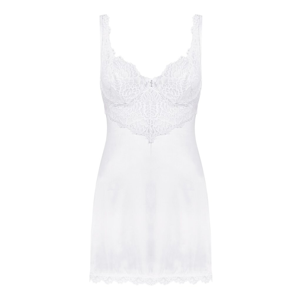 Tailliertes Dessouskleid und String im Set Amor Blanco von Obsessive. Oberteil komplett aus Spitze und mit Cup-Bügeln gearbeitet, der Saum ist ebenfalls mit feiner Spitze verziert. Rundum weich und elastisch für höchsten Tragekomfort. Im Rücken mit Hakenverschluss. Die Träger aus Spitze sind passend verstellbar. Der schlichte schöne String komplettiert diesen verführerischen Look.