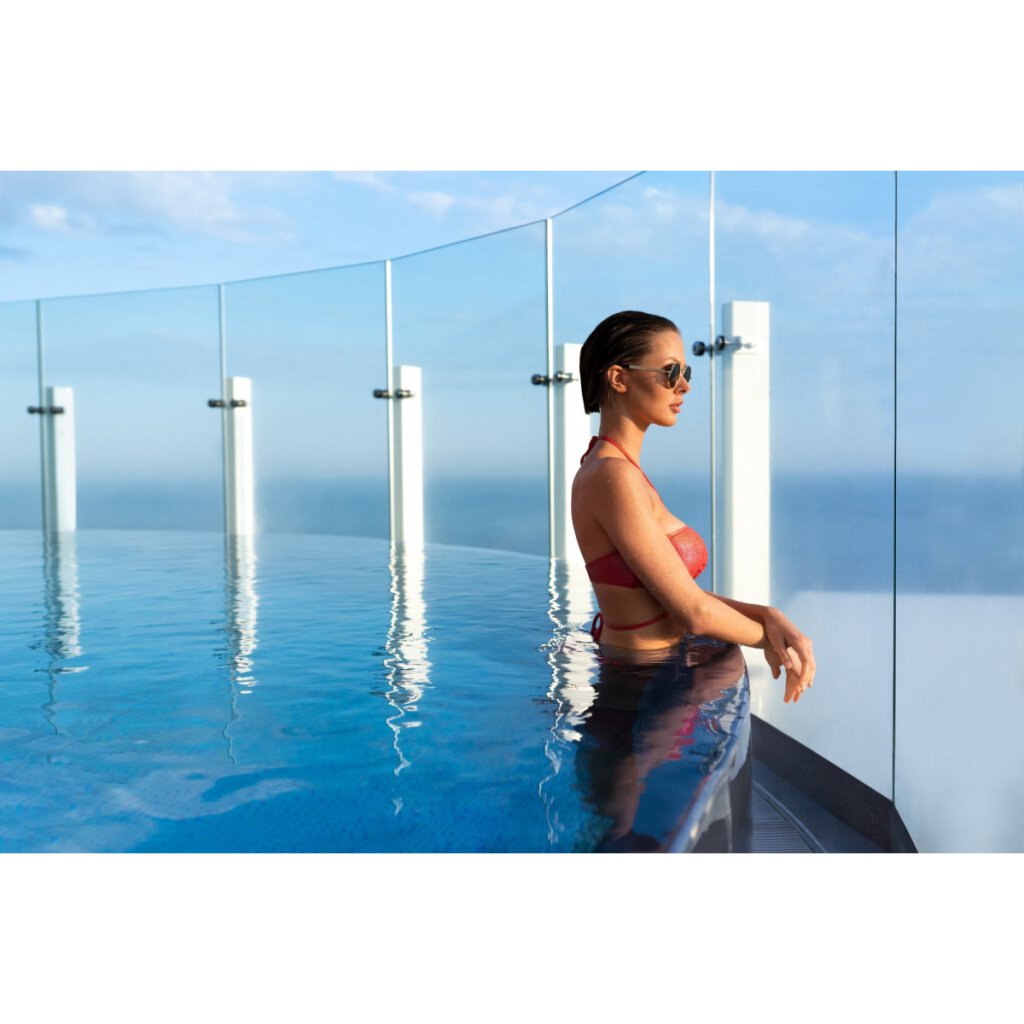 - The bikini is tied at the neck