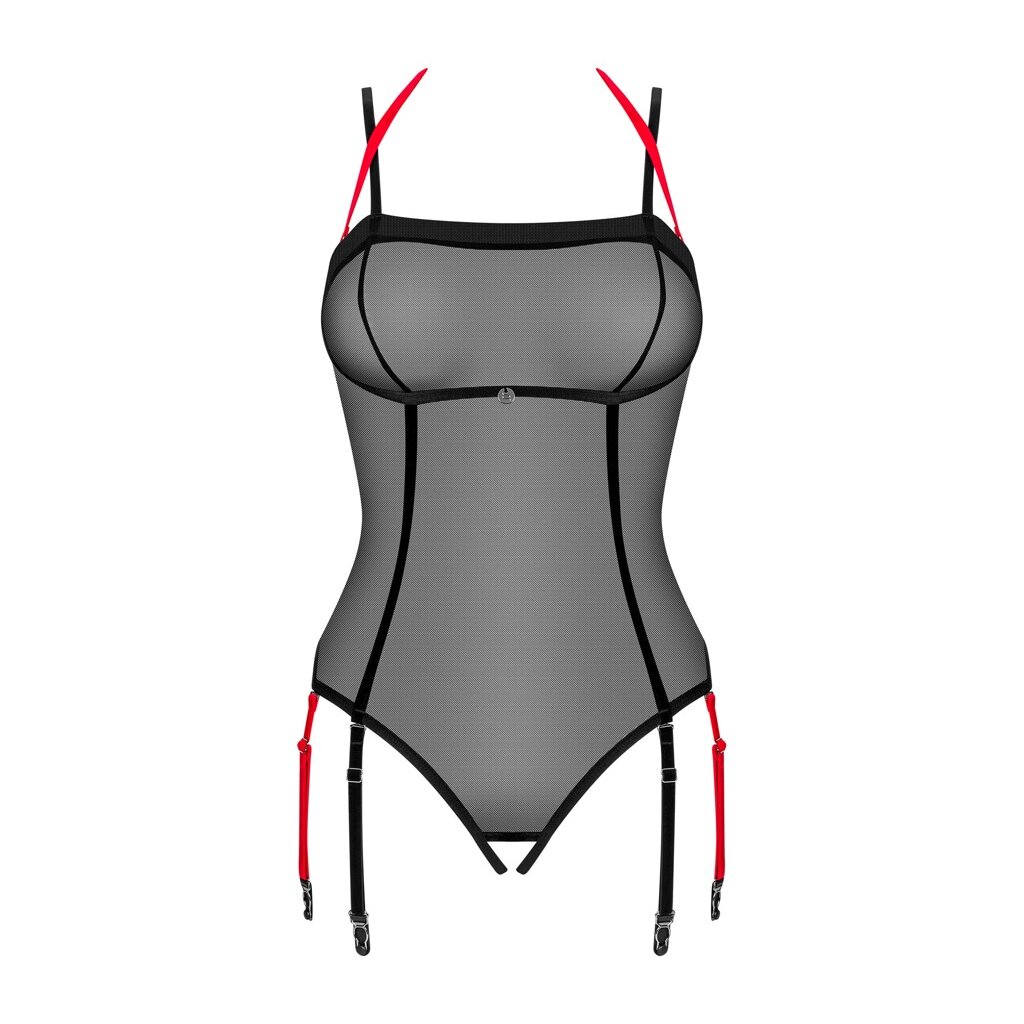 The semi-transparent Glandez thong body from Obsessive lets you quickly expose your breasts with the removable halterneck.