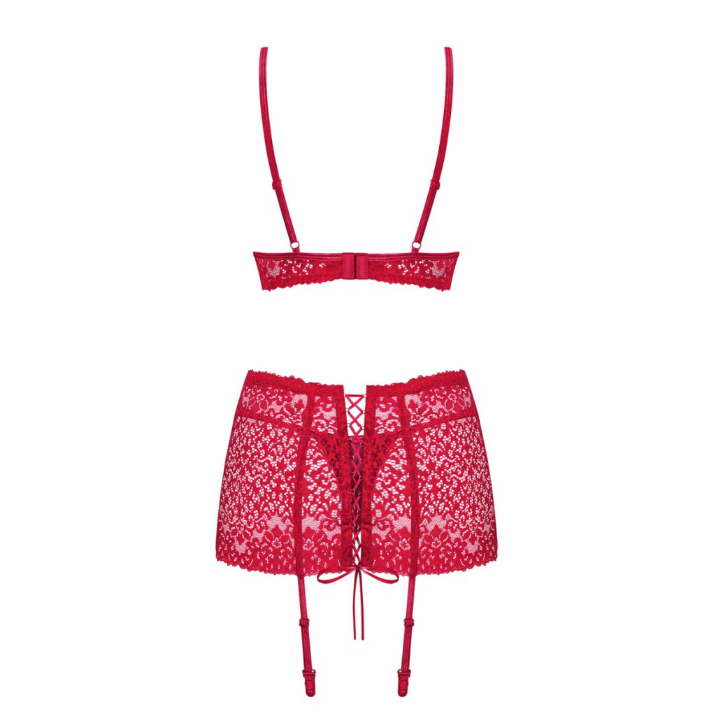- Verführerisches rotes 3-teiliges Set gefertigt aus zarter Spitze