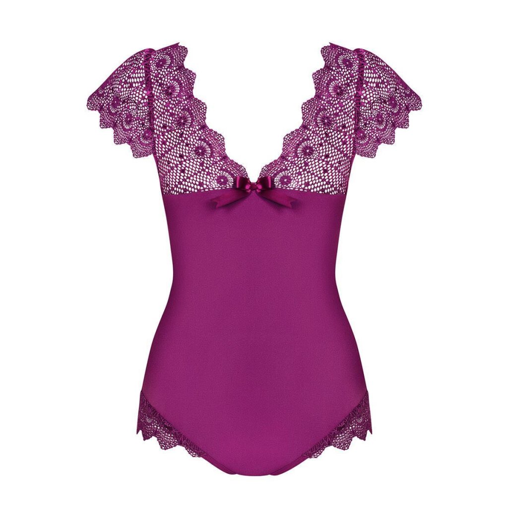 - Seductive teddy made of smooth material and provided with shiny vertical stripes