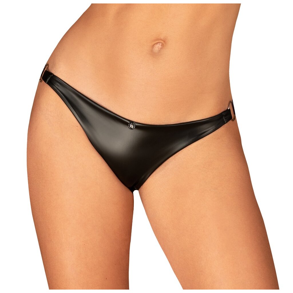 Close-fitting Viranes briefs by Obsessive in a trendy black wet look. Soft and elastically comfortable. With a small jewellery element at the front and decorative rings at the sides.