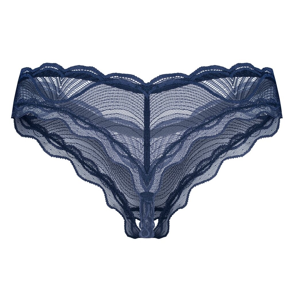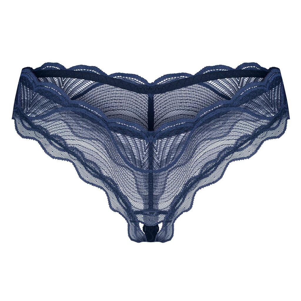 Riostring ouvert Nightly Blue by Obsessive in sensual transparency with filigree lace optics in classy blue-on-blue. Soft and elastic all over for high wearing comfort. Seductively open at the crotch.