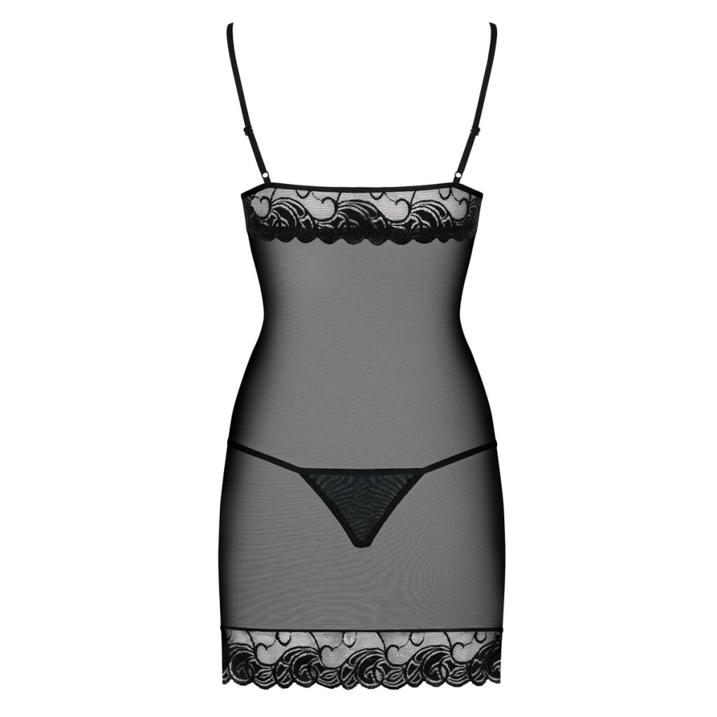 - Seductive, sheer chemise made of smooth mesh and delicate lace