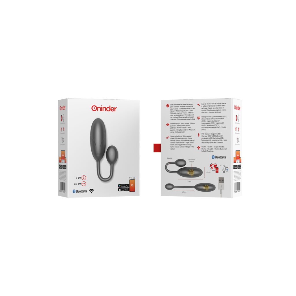 Avec ce vibromasseur, vous pouvez non seulement choisir entre des combinaisons de vibrations et d'intensité prédéfinies, mais aussi utiliser un système de contrôle innovant basé sur l'appli. Il vous suffit de télécharger l'application ONINDER™ gratuite sur votre appareil Android ou iOS et de connecter votre smartphone ou votre tablette.