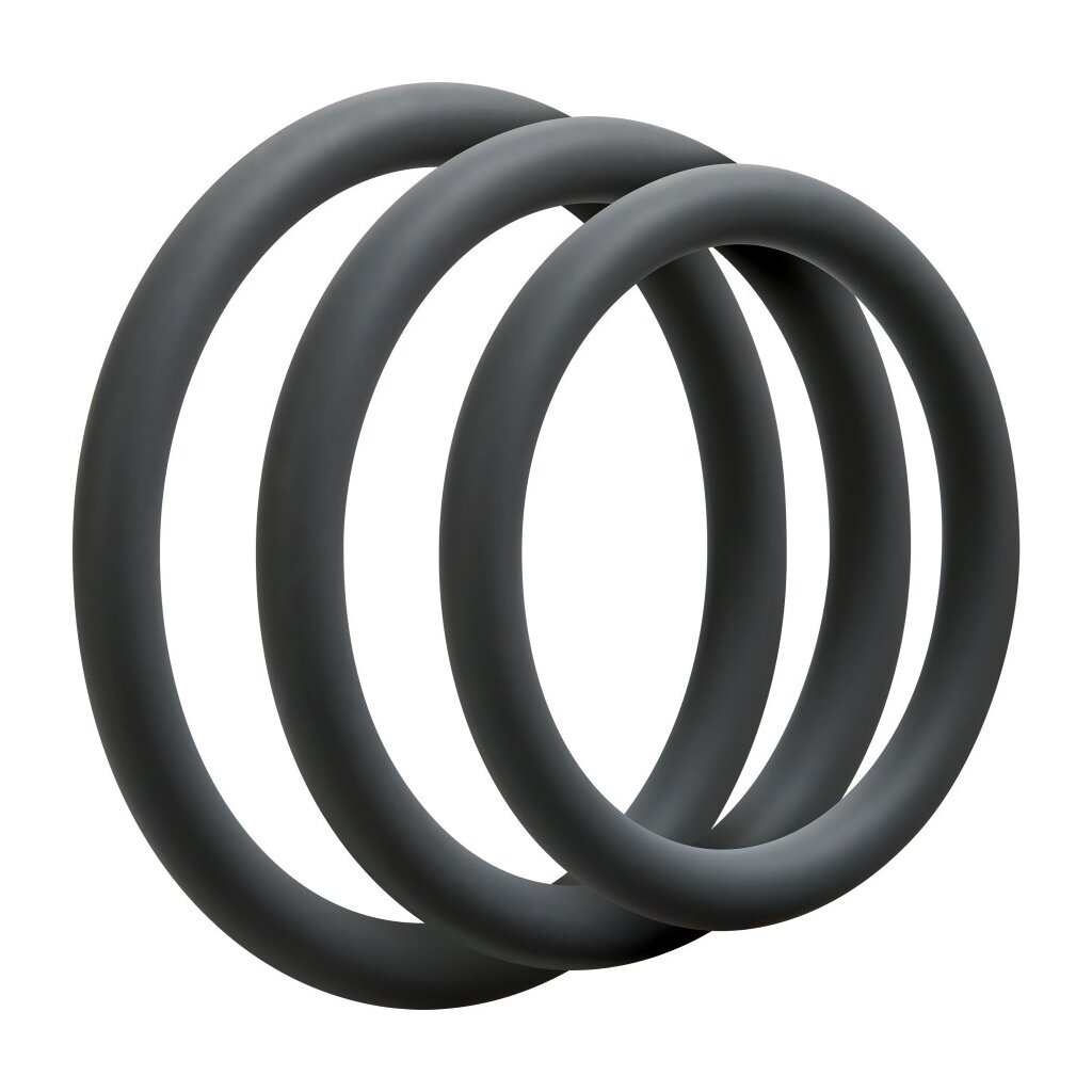 Optimisez votre expérience avec ces anneaux de bite en silicone ! L'ensemble d'anneaux fins OptiMALE offre une taille et une circonférence améliorées avec trois anneaux de 40 mm, 45 mm et 50 mm de diamètre. Ces anneaux sont ultra-extensibles pour une utilisation facile autour de la tige ou des testicules, pour maintenir ces érections durables dont vous avez toujours rêvé, et pour prolonger votre éjaculation. Disponible en noir et ardoise ; silicone sans phtalate.