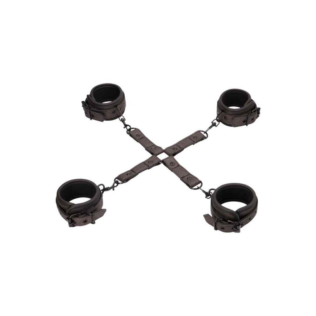 Begib dich auf alle Viere mit dieser hochqualitativen vierer-Fessel! Dieses schön hergestellte titan-graue Gerät aus gebundenem Leder, PVC und Metall wird seine Sache gut machen! Euer BDSM-Spiel wird völlig neuartig!
