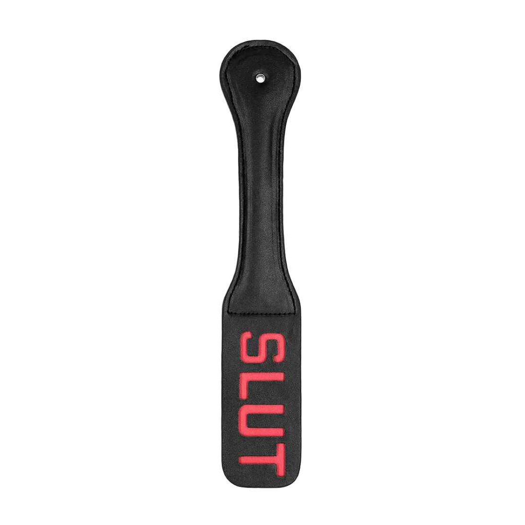 Sie hinterlässt bei Ihrem Sub einen tollen Abdruck. Das Wort SLUT ist umgedreht, sodass es sich auf ihrer Haut abzeichnet. Aus festem, aber flexibel genähtem Leder.