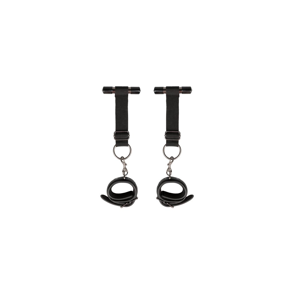 Wenn Sie neu oder relativ neu in der Welt der Fesselung sind, dann sind diese Türfesseln das perfekte Spielzeug, um Ihr Abenteuer zu beginnen. Die Fesseln sind sehr einfach zu benutzen. Alles, was Sie tun müssen, ist, die Metallstangen über die Oberseite Ihrer Tür zu hängen und sie zu schließen. Fesseln Sie die Handgelenke Ihres Partners und er oder sie kann nirgendwo hin! Diese Handschellen können überall verwendet werden, solange es eine Tür gibt, die das Gewicht tragen kann. Perfekt für ein aufregendes Bondage-Abenteuer zu Hause oder im Urlaub. Die Handschellen sind verstellbar und bestehen aus robustem und langlebigem Kunstleder, das mit Schaumstoff gefüttert ist.
