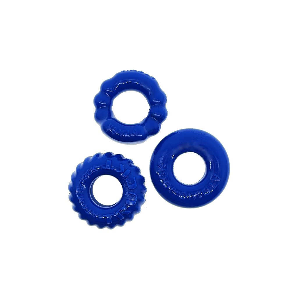 BONEMAKER 3-pack are the three best cock rings for 3X the bone...3 ways to grab your junk...or your balls...or both. TRUCKT large is a ribbed, non-rolling, grippy ring perfect for your hang or stacking on your balls. DO-NUT is a "fuck ring" that provides maximum grip. 6-PACK is ribbed and has a ball flange for more ball lift. DO-NUT Height: 13mm, Width: 51mm, Length: 51mm, Outer Circumference: 153mm, Outer Diameter: 51mm, Inner Circumference: 64mm, Inner Diameter: 20mm / RIBBED (6 PACK) Height (thick side): 20mm, Height (thin side): 13mm, width: 51mm, length: 51mm, outer circumference: 153mm, outer diameter: 51mm, inner circumference: 64mm, inner diameter: 26mm / TREADS (TRUCKT) height: 21mm, width: 45mm, length: 45mm, outer circumference: 153mm, outer diameter: 45mm, inner circumference: 64mm, inner diameter: 26mm / Made of TPR and Silicone