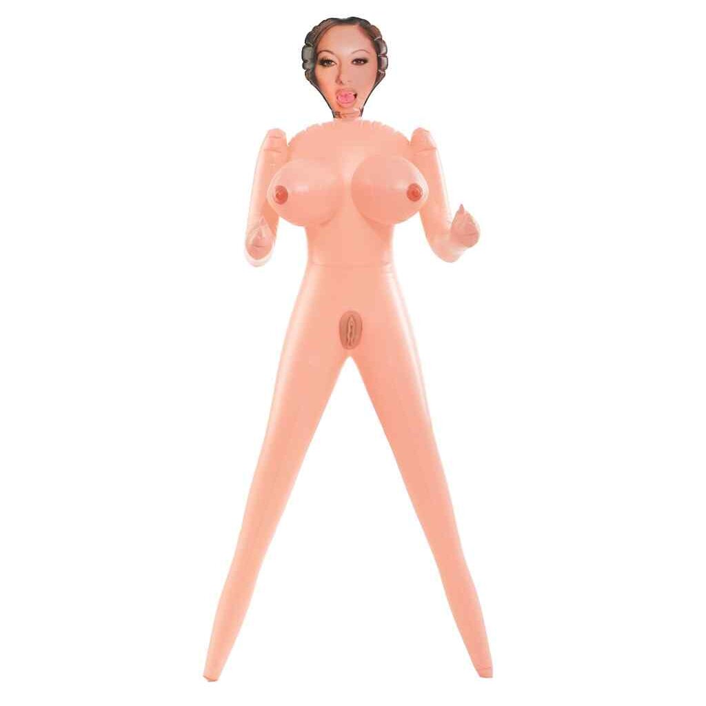 Inflatable sex doll that is in a standing up and hugging possible. She has wonderfully large breasts with hard nipples, and a soft sensual mouth. She also has 2 other exciting pleasure holes for deep exploration. Includes a repair set.