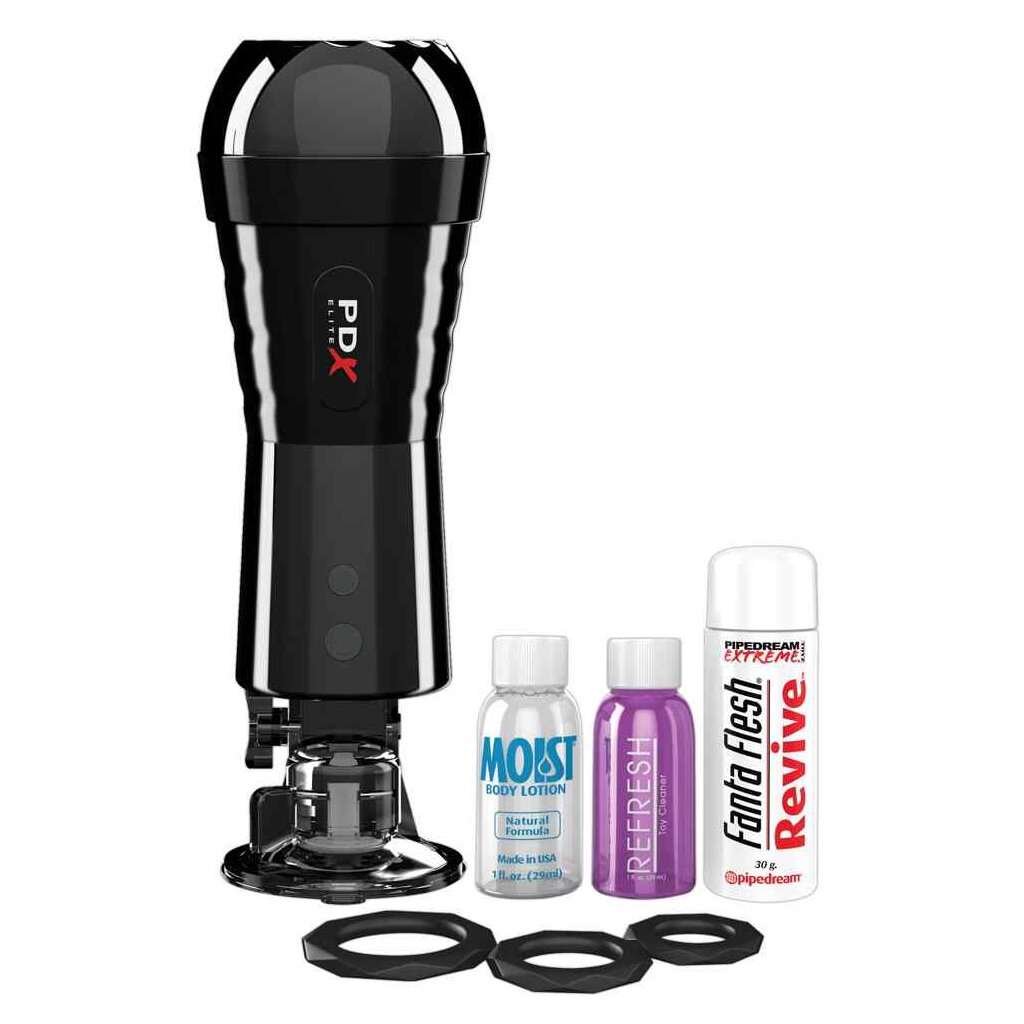 Für Masturbationsfreuden vom Allerfeinsten! Hautfarbener, herausnehmbarer Vagina-Masturbator in schwarzer Dose mit Saugfuß für handfreie Benutzung. Mit Stimulationsnoppen innen, Melk-Funktion (5 Modi), Saugfunktion und Vibration (10 Modi). Gesamtlänge 21 cm. TPR, ABS. Wiederaufladbar - USB-Kabel liegt bei.