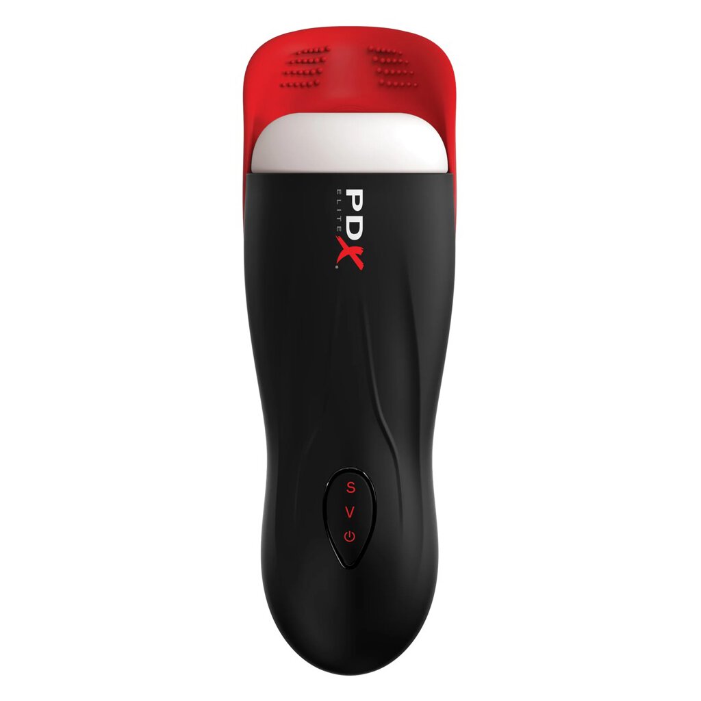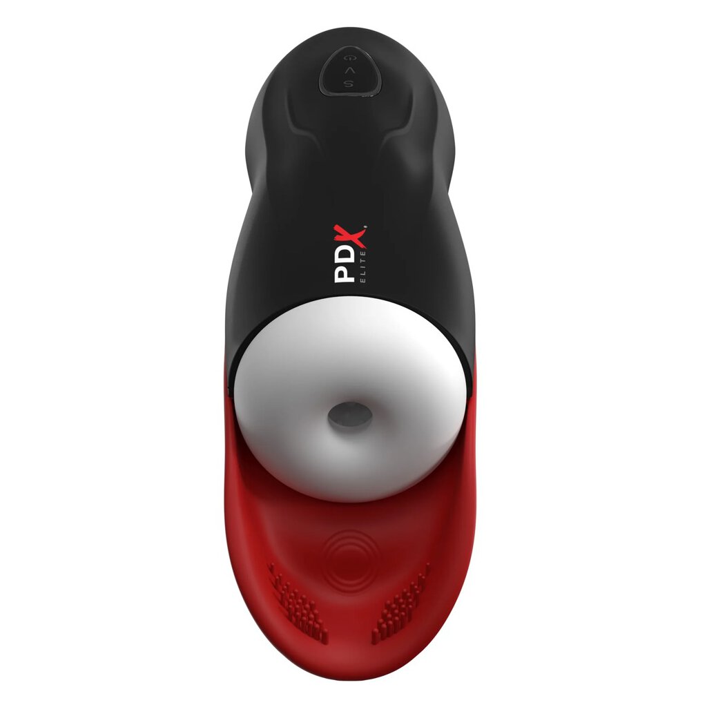 Masturbator with testicle stimulator Fap-O-Matic Pro by PDX Elite with automatically varying suction function (5 modes) and vibration (10 modes) for an intense penis massage that includes the testicles right away. The powerful functions can be conveniently controlled and combined at the touch of a button.