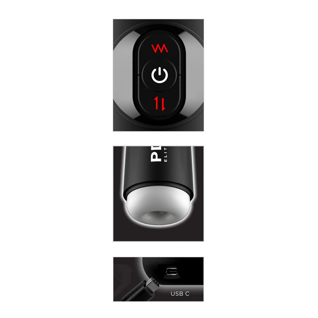 Masturbator Moto Milker by PDX Elite in handy discreet case with protective cap. With powerful vibration and intense handjob massage function that pampers the penis all around. The innovative shock massage technology adapts ultra-gently to the penis and pleasure with its automatically varying shock force.