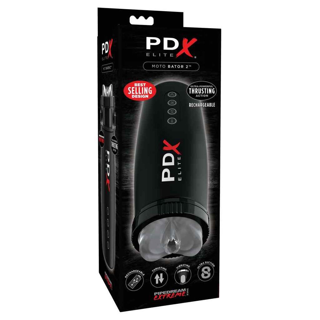 Black masturbator with 2 thrusting speeds, 5 vibration modes and 3 suction modes - they can be controlled separately. Warms up to body temperature and has a grooved and dotted pleasure tunnel. Can be recharged with the included USB cable for hours of erotic fun.