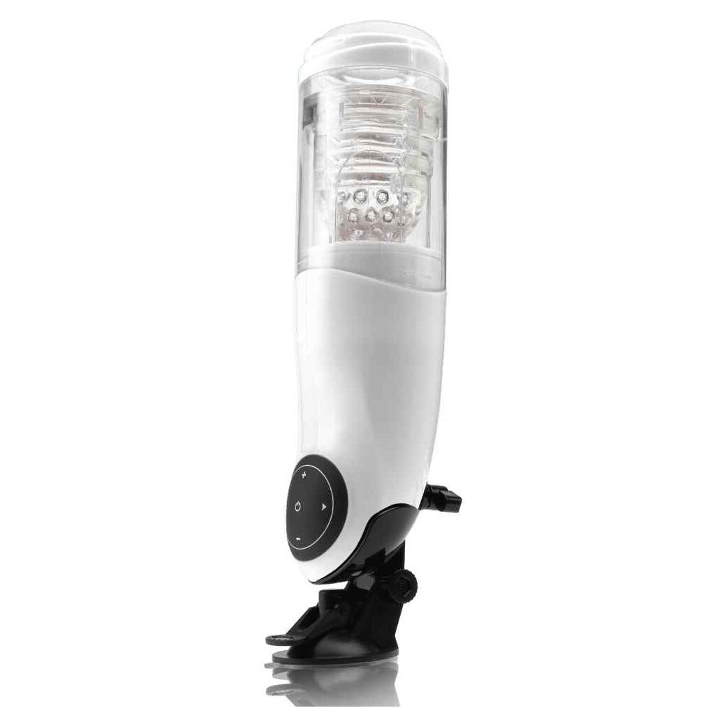 Automatischer Blowjob – direkt aufs Tablet! Der innovative Masturbator mit Vagina-Öffnung bietet dank seines Motors, der sowohl drehende, wie auch stoßende Bewegungen machen kann, ein intensives Masturbations-Erlebnis auf Knopfdruck des hochmodernen Touch Control Pad. Die Stoß- und Rotationsfunktion mit 5 wählbaren Geschwindigkeiten und 10 Modi sorgt dabei für den ultimativen Genuss. Gleichzeitig macht die mitgelieferte Tablet-Halterung es möglich, dort von Smartphone bis Tablet ein Gerät einzuklemmen und einen Erotikfilm oder ästhetisch ansprechende Bilder für die optische Befriedigung zu konsumieren. Der mitgelieferte Saugfuß ist besonders stark und macht eine handfreie Verwendung möglich. Da der Masturbator wasserfest ist, freut er sich auch über eine spritzige Nutzung in der Dusche. Zur komfortablen Reinigung ist der Masturbator aus der Dose herausnehmbar und befindet sich in einer Schale, die mit einem Magneten an der Basis haftet, sodass auch das Einführen ohne Verknicken immer wieder gelingt. Inklusive USB-Ladekabel.