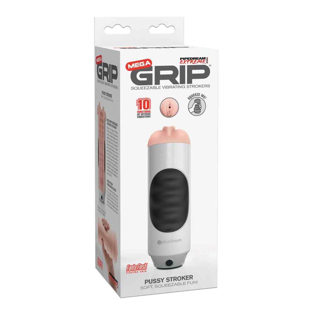 Rundum gute Handarbeit! Ein Händedruck kann viel mehr sein – das zeigt dieser Super-Masturbator, der durch Druck auf die Seiten den Griff um den Penis intensiviert, welches die Saugkraft wesentlich erhöhen kann. Wenn so viel Superstimulation noch nicht genug ist, dann wird einfach die Vibration dazu geschaltet, die den Körper in 10 starken Vibrationsmodi zum Beben bringt. Nach dem ganzen Spaß ist der Mega Grip Vibrating Stroker Pussy immer noch ein guter Freund, denn er lässt sich ruckzuck reinigen und ist gleich wieder einsatzbereit. Batterien bitte extra bestellen: 2 x AAA.